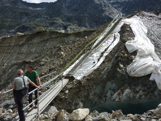 Der Gletscher auf der Bächliseite geht massiv zurück. Auf seinen Ränder warten riesige Blöcke um nach unten zu rutschen. Achtung. Diese kommen ohne Vorwarnung runter.