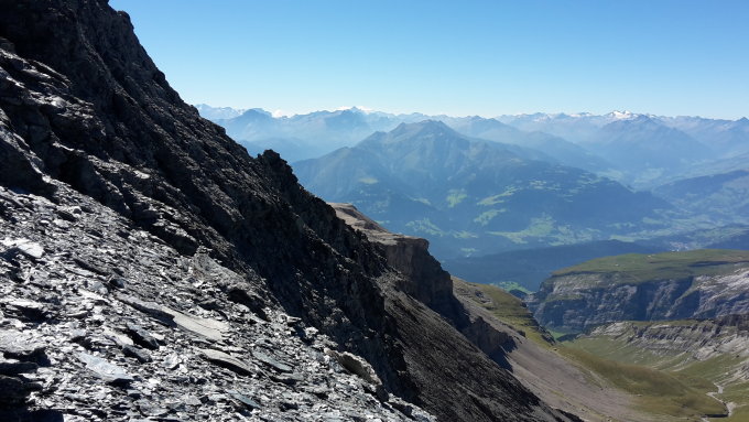 Die Aussicht vom Ringelspitz ist gewaltig, bei maximaler Sichtweit sind 13 Viertausender erkennbar, bis zu den Walliser und Bernerriesen im Süden Piz Berninamassiv und Admello,im Osten die Oetztaler Berge.
