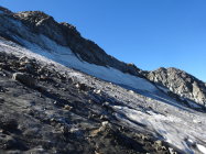 Wanderwege im guten Zustand. Lediglich für ein kurzes Stück vor dem Gletscher gibt es keinen eindeutigen Pfad mehr. Dort teilweise lose Steine - Gletschervorgelände. Gletscher komplett aper. Im obersten Bereich wenig Spalten.