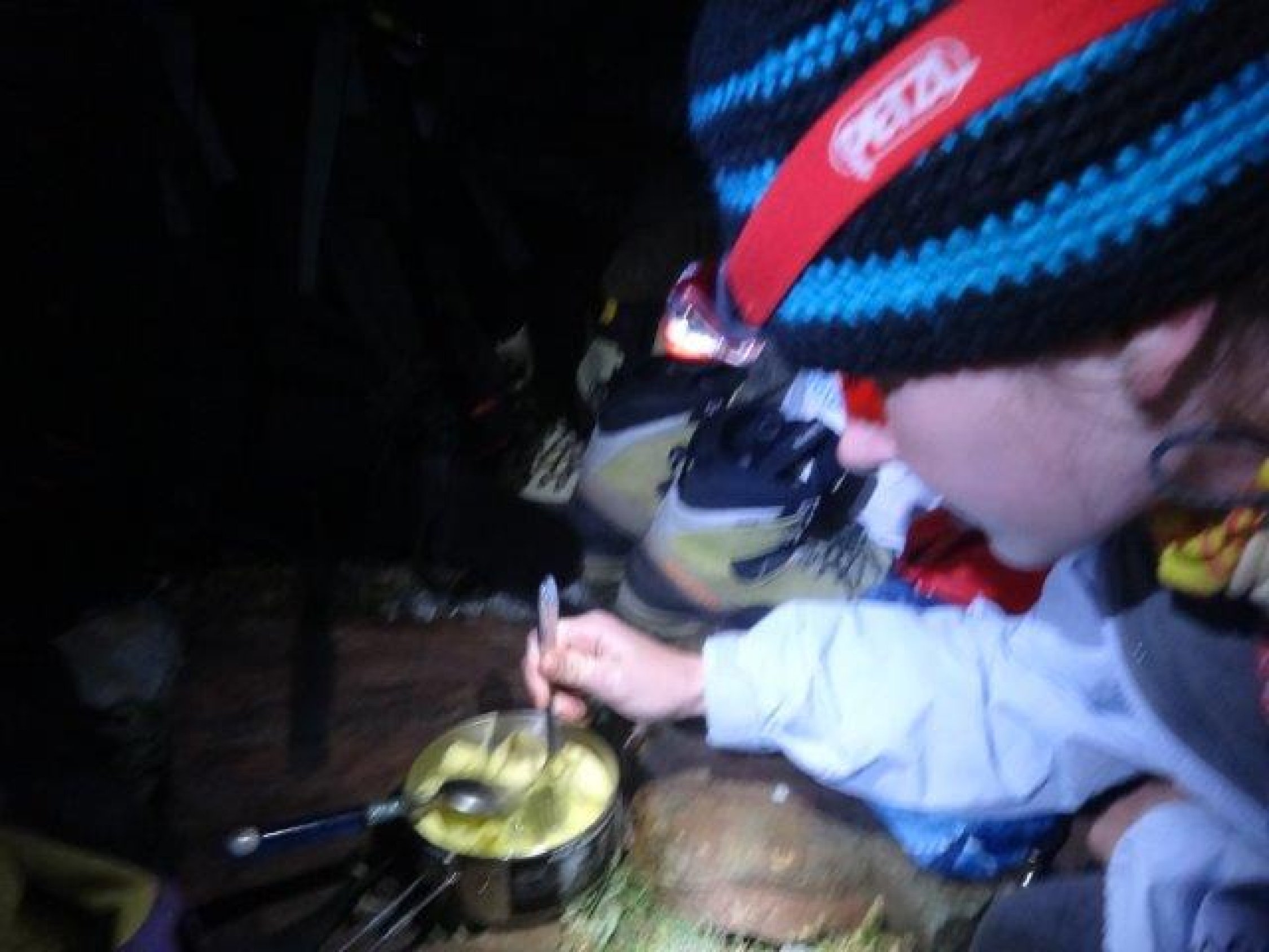 Der Alphubel "gehört" zur Mischabel-Gruppe. Sie besteht aus Täschhorn, Dom und Lenzspitze. Die Herkunft des Namens Mischabel ist ungeklärt. Zum Teil wird die Ansicht vertreten, er sei von der dreizinkigen "Mischtgabla" (Hochdeutsch Mistgabel) abgeleitet. Danke an Tochter Sarah Elena fürs finden des ausgezeichneten Biwak-Platzes um 21.00 Uhr.