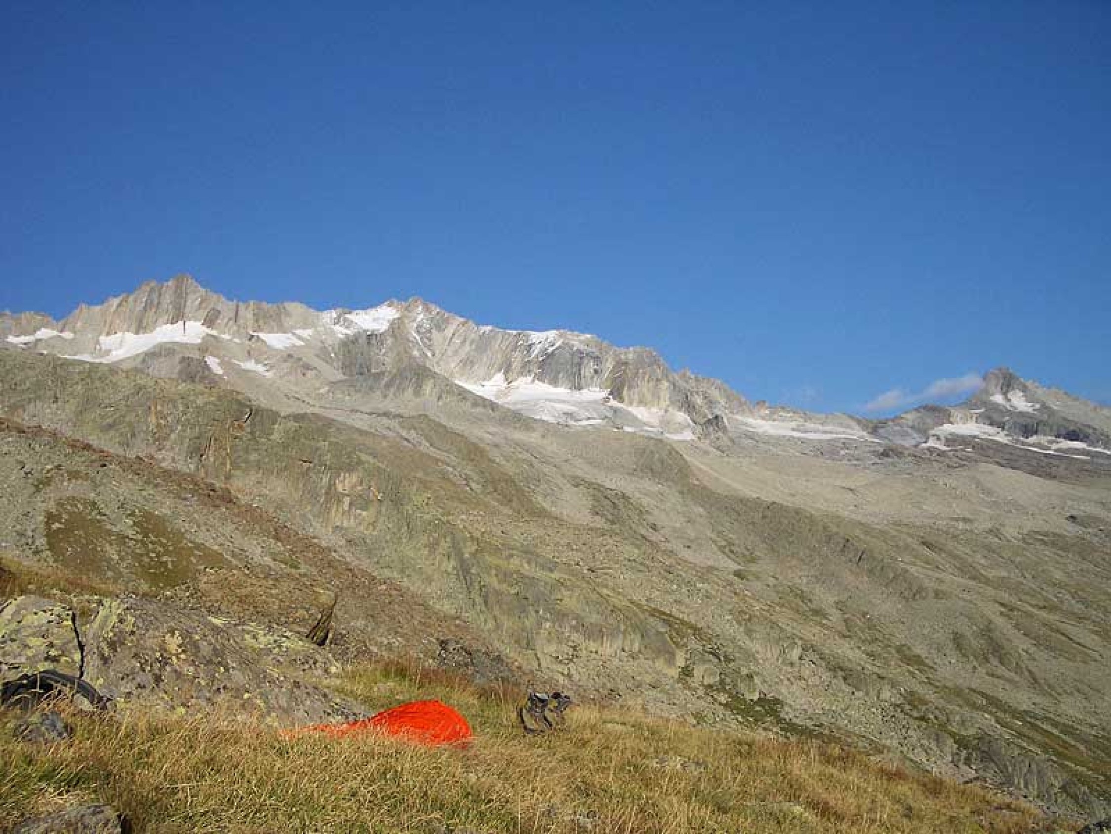 beim triftgrat handelt es sich um eine vergessene route, die kaum mehr ausgeführt wird. eigentlich schade, vor allem am trifthorn findet man sehr guten, festen gneis. begehungsspuren hingegen sucht man vergeblich, einsamkeit ist hier garantiert.