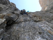 so drei Hakl und auch zwischendurch kommen ein paar Eisenstifte. Cams und Keile kann