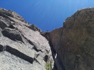 Top - mit dem Wind kühler als gedacht, haben auf jeden Fall trotz der strahlenden Sonne nicht geschwitzt... Die Route ist (bis auf die Stände) so gut wie clean. In der ersten SL hat es einen BH an der Schlüsselstelle. Im Rest der Route insgesamt noch ca 3-4 NH. In der letzten SL kann ein BH der kreuzenden Sacremotion geklippt werden. Herrliche Granitkletterei zum selbst Absichern!