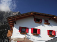 Nach dem Abstieg über den Weststeig landete und starte kurz danach ein gelber Hubschrauber neben der Rifugio Carestiato.