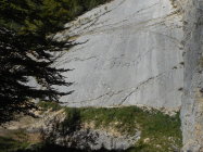 Rechter Wandsektor Aufstieg: Es bieten sich 2 Dutzend bestens abgesicherter Kletterrouten an. Die Standplätze sind mit zwei Haken und Stahlverbindungen ausgerüstet. Jedermann findet im Bereich 4a bis 6a seine Route. Besten Dank den Erschliesslern für die ausgezeichnete Arbeit.