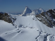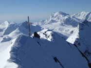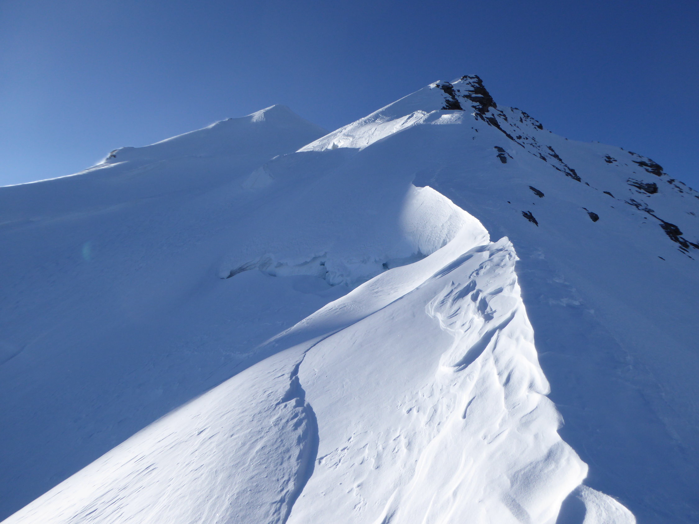 Gute Verhältnisse, auf dem Festigrat viel Spurarbeit (erste Seilschaft), windig, Schneeverfrachtungen