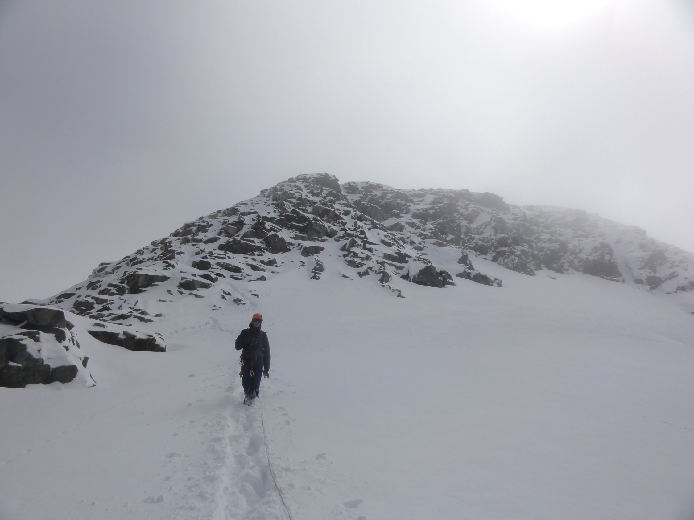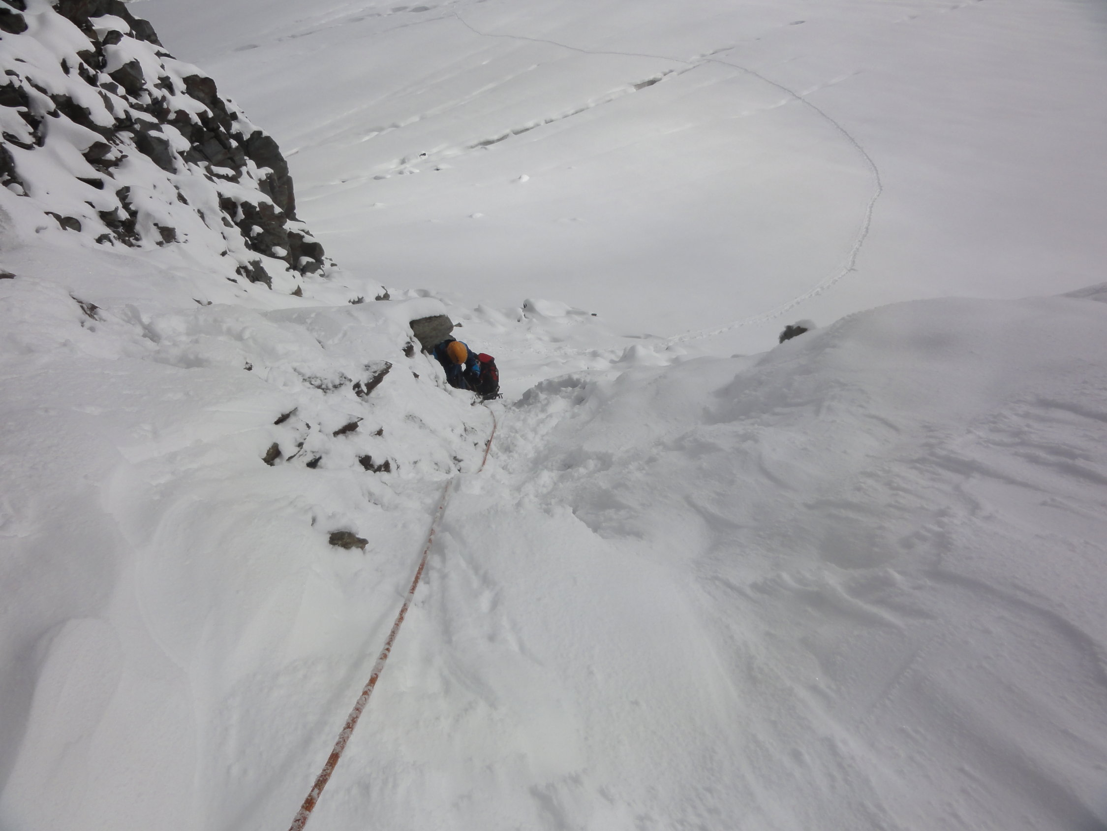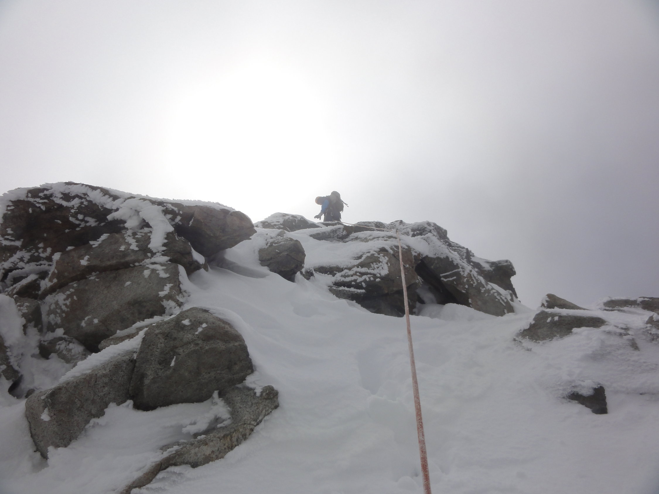 Der obere Gletscher hatte dann noch mehr Schnee. Teilweise sank man bis zu den Hüften ein. Meist liegen aber zwischen 30-50cm Neuschnee. Der Grat war dann mehr oder weniger gut machbar.