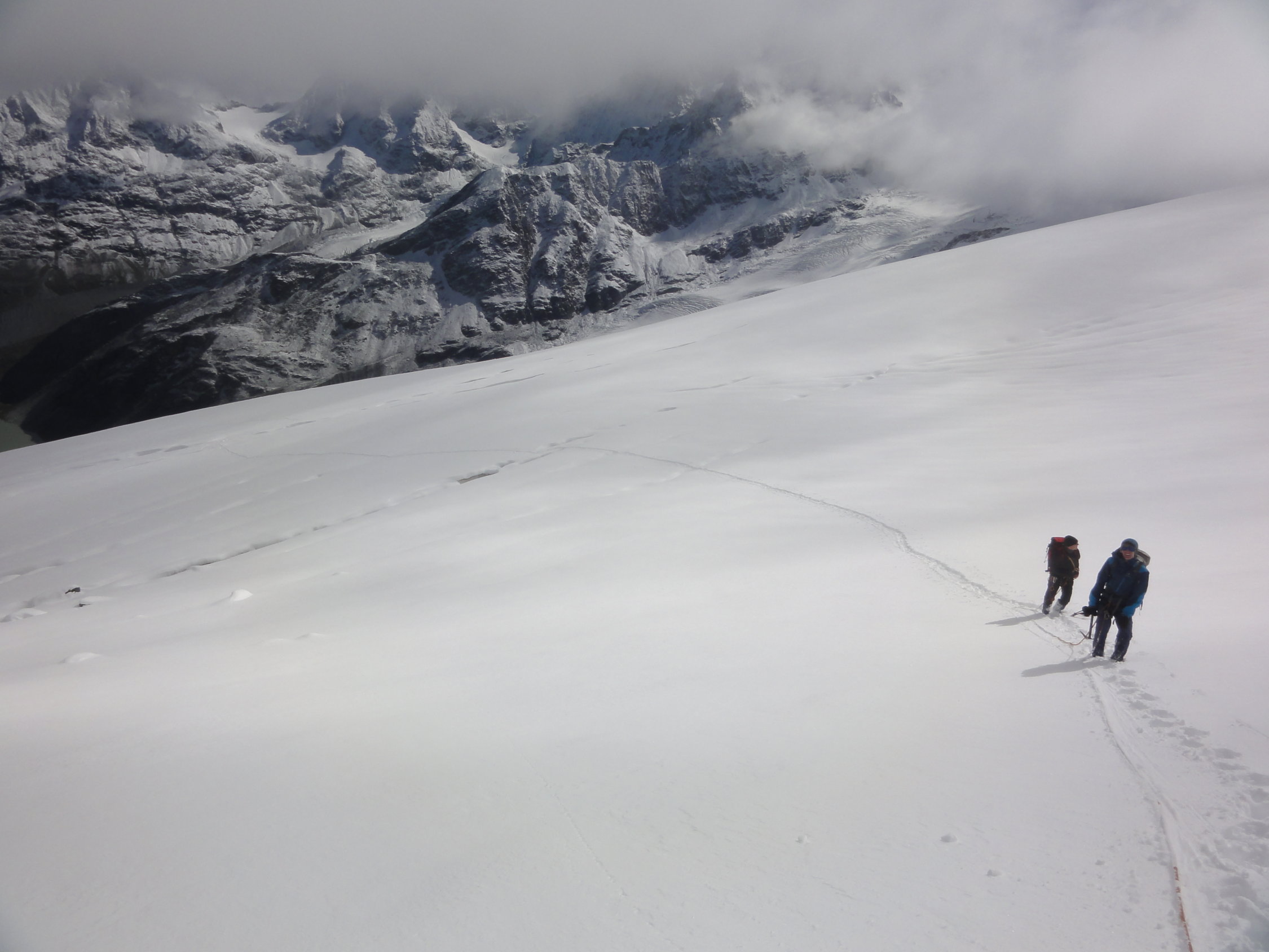 Auf dem Gletscher ist der Schnee sicher nicht schlecht. Aber bei den steigenden Temperaturen wird der Schnee, der die Verhältnisse ungemein mühsamer macht (und auch etwas schwieriger) wieder zu einer besseren Auf- und Abstiegssituation führen.