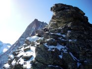 Der Zustieg zum Col Tsarmine ist komplett schneefrei. Am SE-Grat lag nordwestseitig etwas Schnee, der aber nicht stark behinderte. An manchen Stellen gab es auch wenig Wassereis auf den Felsen, das man problemlos umgehen konnte. Der Abstieg war wieder schneefrei.