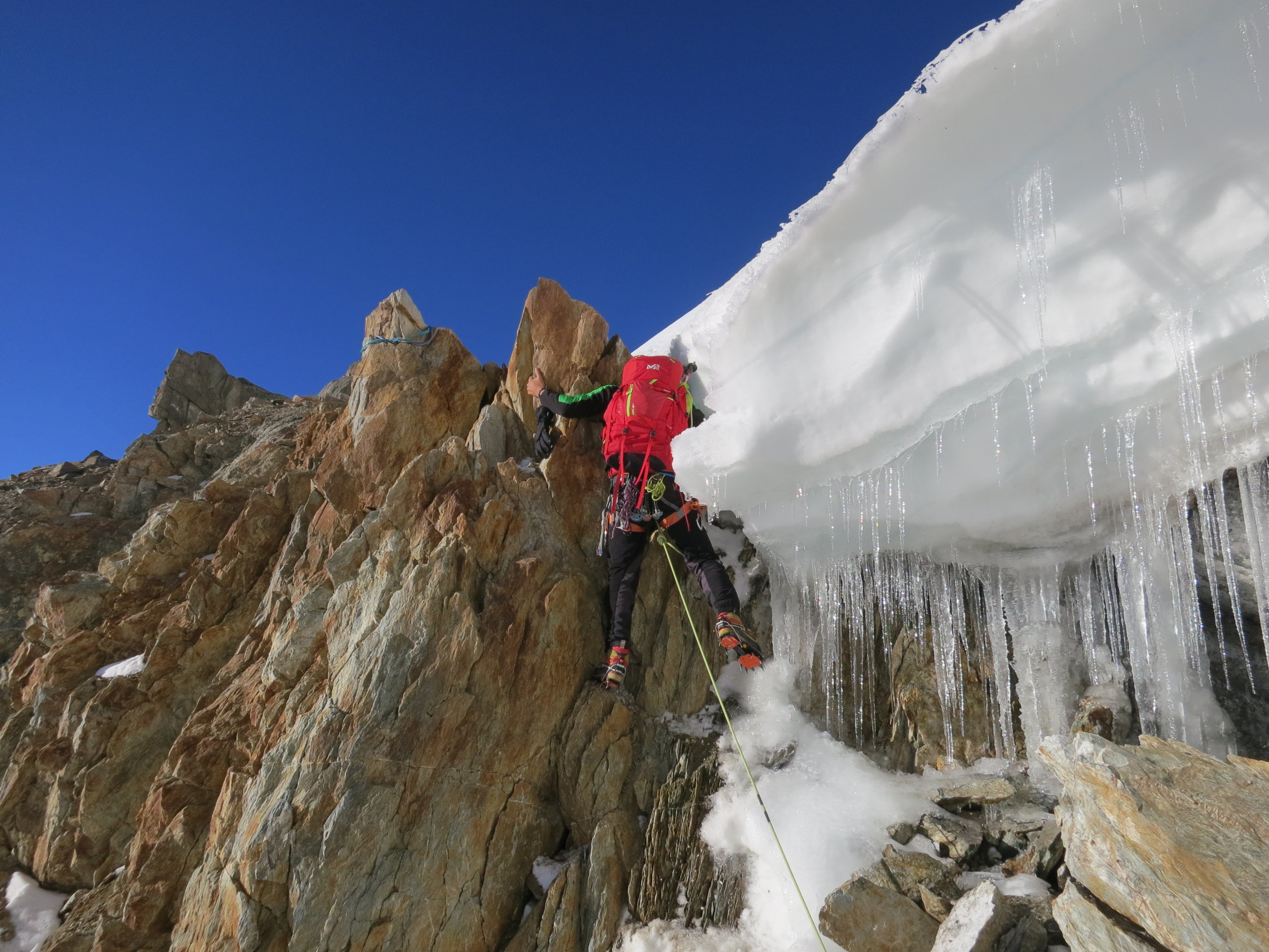 Gute Verhältnisse. Auf dem Gletscher, nach der Konkordiahütte, ein wenig eisig und im Dunkeln nicht ganz leicht zu finden. An den Felsen, unter dem Couloir, findet man dann eine gute Spur. Auf dem Grat sehr gute Verhältnisse, Groß Grünhorn alles ohne Steigeisen geklettert.