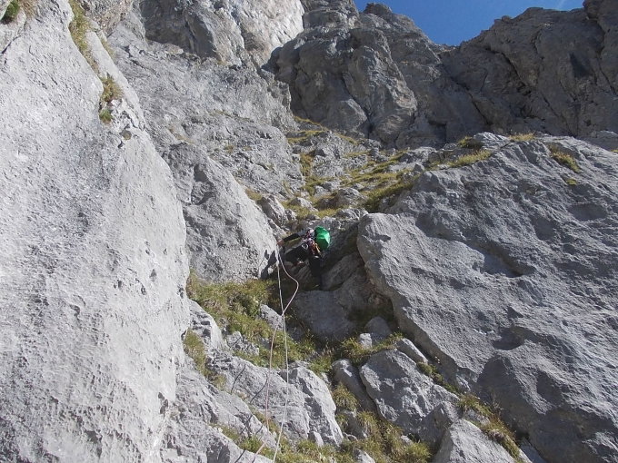 Obwohl gelegentlich recht brüchig, bereitete uns diese Tour doch viel Freude mit einem Schuß Abenteuer, denn schließlich war es eine Kletterei ins Ungewisse. Immer wieder bieten hübsche Verschneidungspassagen auch kompakten Fels. Auch die Querung war unterhaltsam. Unser Dank an Toni Fullin für die Sanierung!