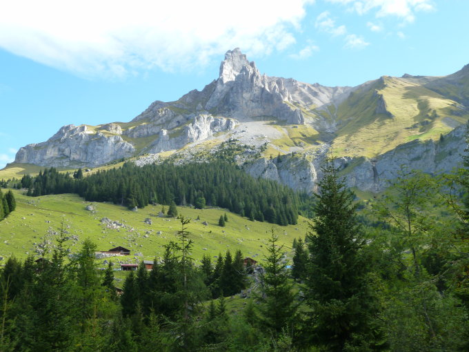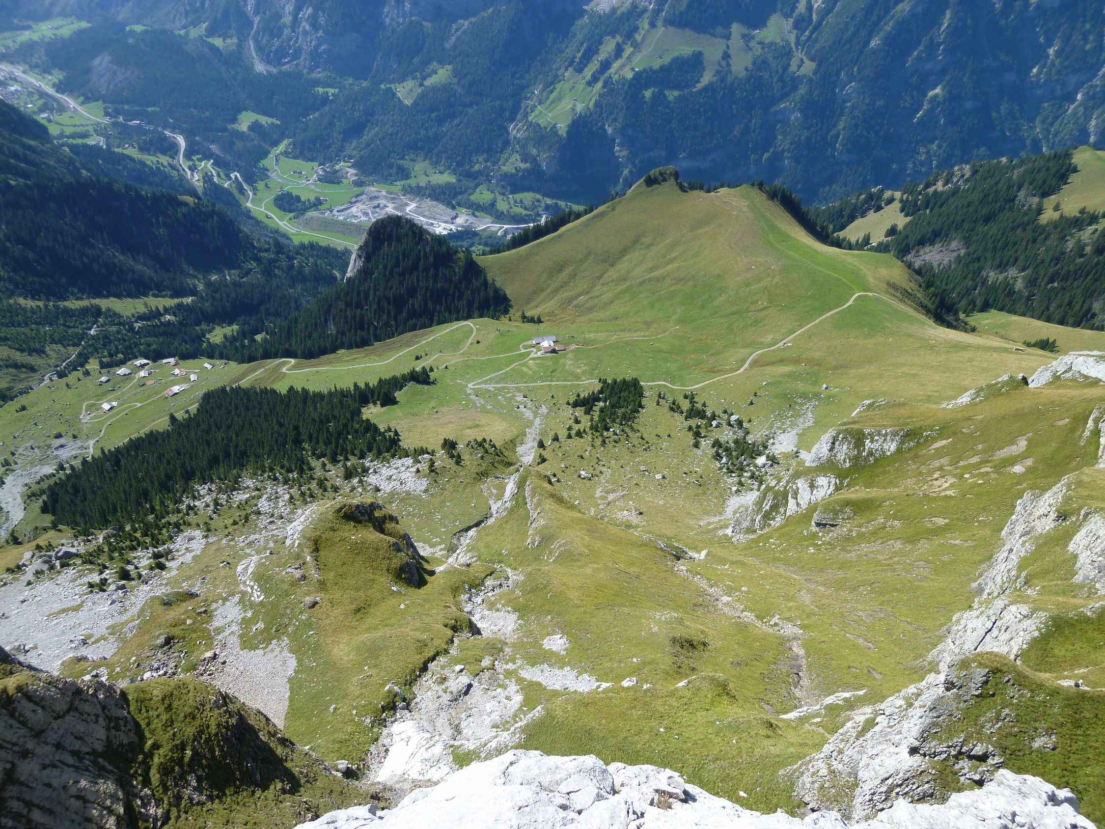 Der Abstieg vom Gipfel erfolgt zuerst entlang sehr ausgesetzter Ketten, anschliessend half uns die Zeichnung im Plaisirführer so gut wie nicht mehr. Wir sind durch ausgewaschene Felsrinne runtergekraxelt, als diese nicht mehr angenehm erschien dann nach links raus in den steilen Grashang (meine Güte,wenn das hier nass ist!!!), irgenwann sind wir dann auf einen in orographischer Richtung nach rechts traversierenden Pfad gekommen, ab da ist der Abstieg nun risikoarm und angenehm (alles nur noch markierte Wege). Von der Undere Giesene durften wir im Jeep von drei Jägern mitrunterfahren bis Mitholz. Ankunft Auto (Mitholz) 17:45.