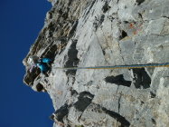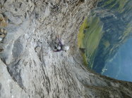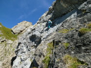 Fazit: Einsame (niemanden gesehen, weder Kletterer noch Wanderer, letzte 2 Monate 2 Gipfelbucheinträge) nicht allzuschwierige Klettertour (W-Grat), welche nur in der letzten SL wirklich brüchig (geröllig) ist, ansonsten findet man immer Griffe und Tritte, die fest sind und ich hatte nirgends das Gefühl, dass mir der halbe Berg entgegen kommt. ABER Zu- und Abstieg sind die Schlüsselstellen dieser Tour!!! Sie sind relativ lange und je nach Bedingungen (nasse Felsrinne im Abstieg, feuchte Grashänge, schlechte Sicht) sehr heikel!