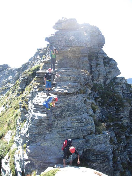 An den schwierigsten Stellen, wie z.B. im Abstieg vom Poncione di Piotta, im Abstieg vom Pizzo Cramosino oder vom Madom Gröss sind einige wenige Halteklammern angebracht. Ab und zu gäbe es auch Haken, um die schwierigsten Stellen abzusichern, was aber erheblichen Zeitverlust bedeuten würde und bei dieser Länge der Tour dauerhaft sicher keine Lösung ist.