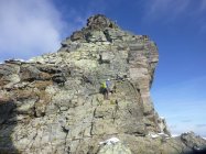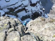 Abseilstände beim Großen Seehorn teilweise durch Schnee verdeckt.