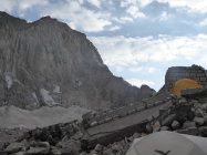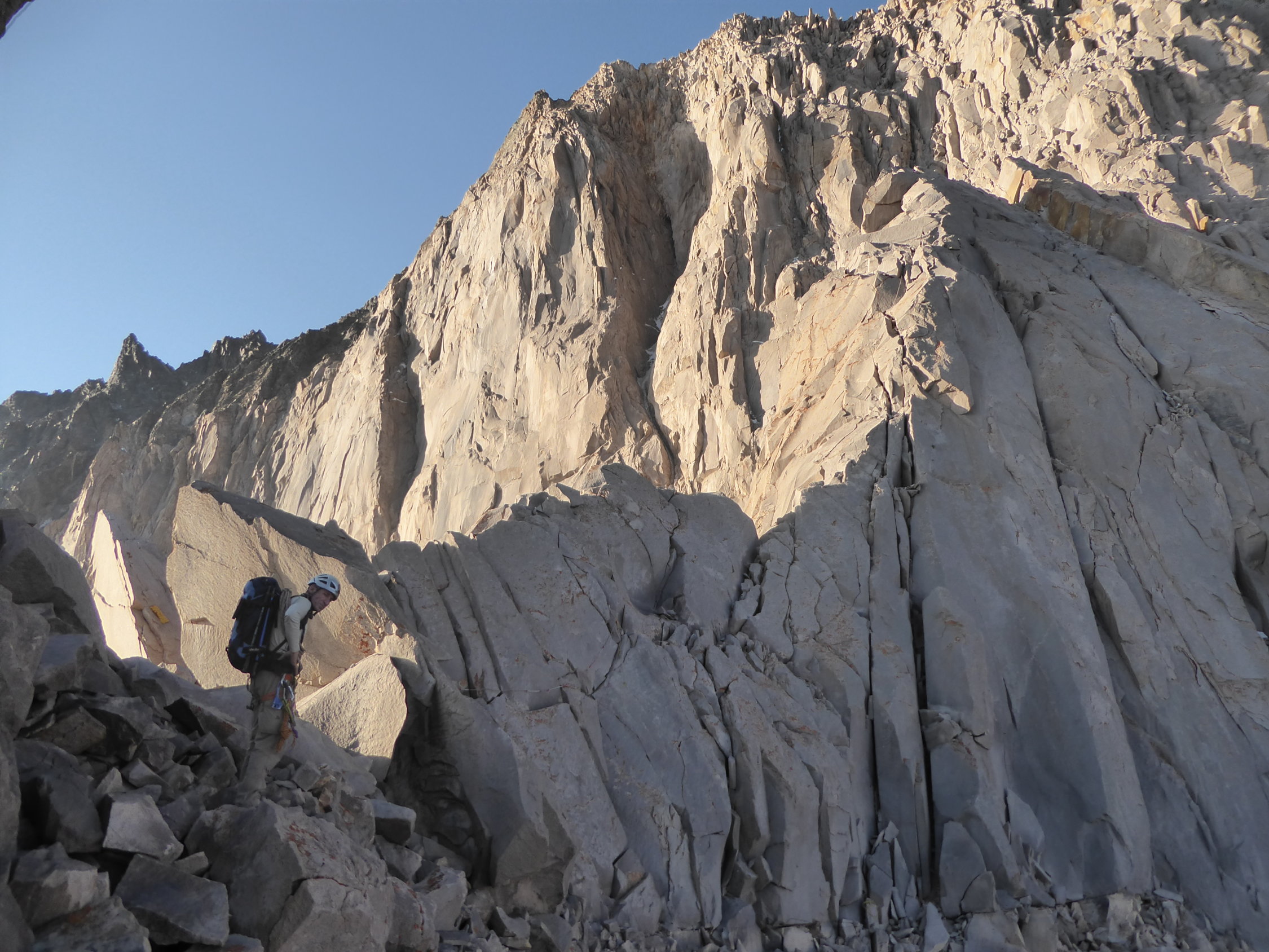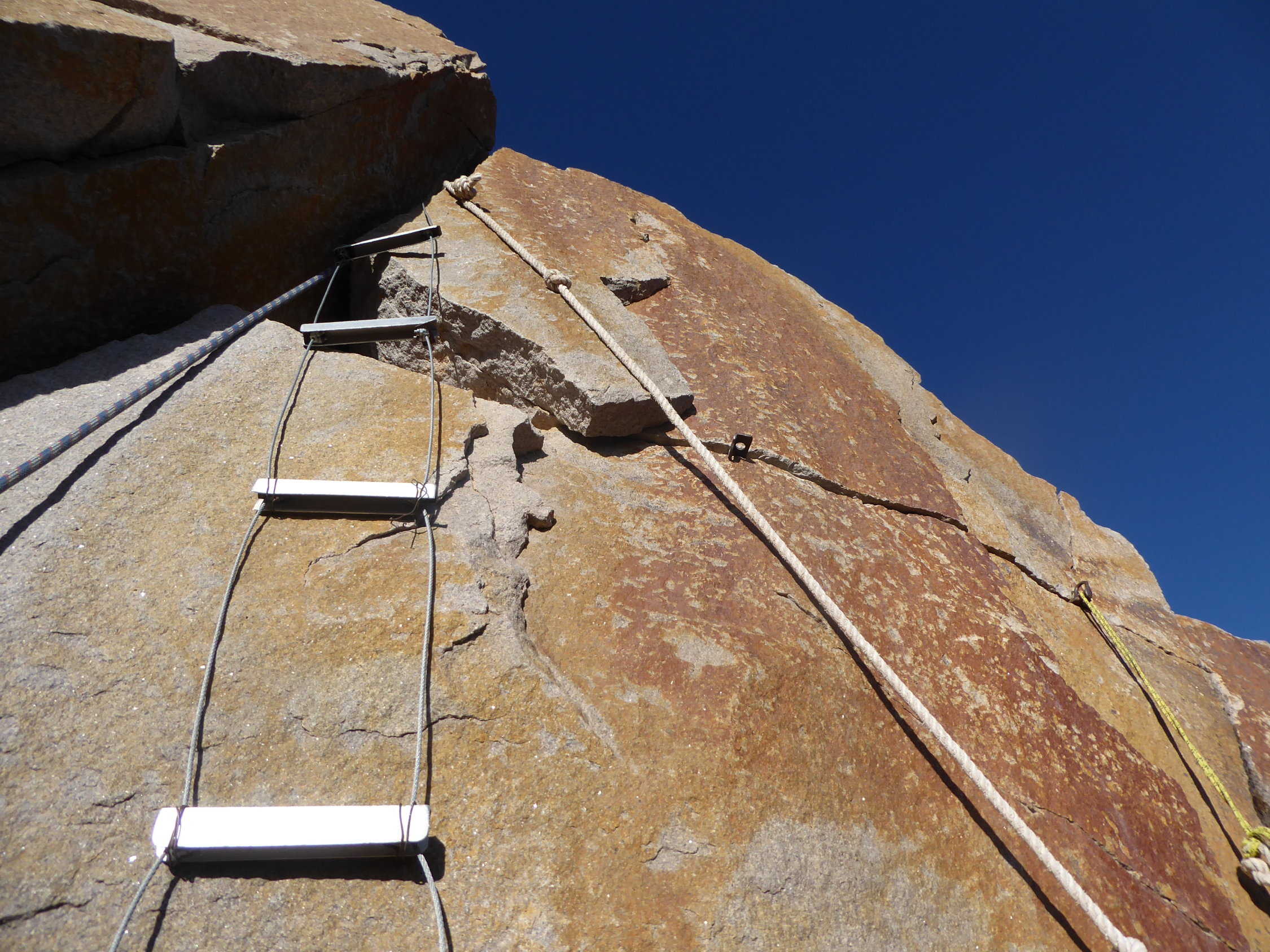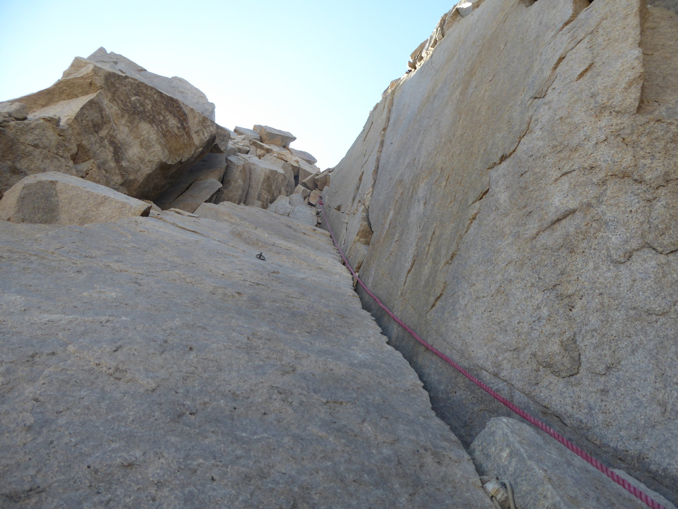 perfekte Verhältnisse in der Route, fast völlig schneefrei, allerdings sehr viel lose Steine, erhebliche Steinschlaggefahr, wenn mehrere Seilschaften klettern