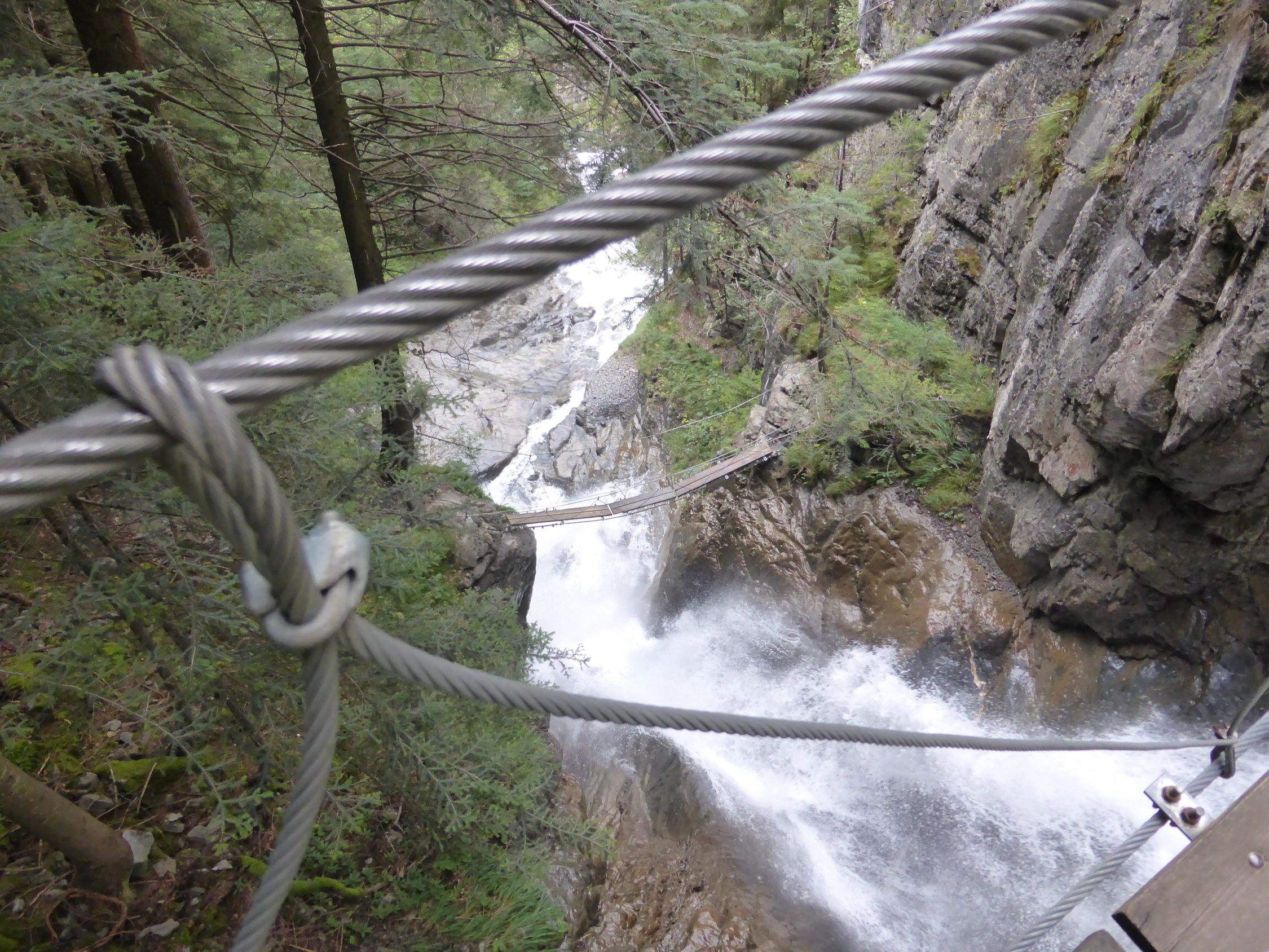Im Bereich bis zur ersten Hängebrücke oft feucht und entsprechend rutschig(heikel). Danach trocken und absolut top.