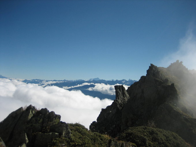 Tourenbeginn in La Creusaz (1'777 m), von Les Marécottes (1'030 m) über eine Seilbahn zu erreichen. Der Südostgrat ist durchgehend blau-weiss-blau markiert, und die Wegfindung bereitet trotz des anfänglichen Nebels keinerlei Probleme. Alle Kletterstellen sind trocken, die gefährlichen Passagen durch Ketten und Leitern absgesichert. Aufpassen auf durch Tiere ausgelösten Steinschlag.