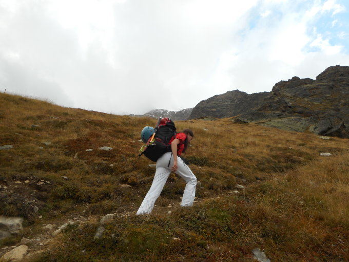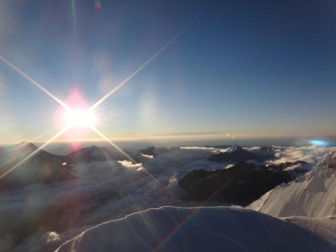 Aufstieg: Gute Verhältnisse angetroffen. Die Besteigung hatte aber den Charakter einer Winterbesteigung. (siehe Fotos) Am Samstag, und in der Nacht auf Sonntag hats doch bei starkem Wind die die alte Spur zugeweht. Es war 20cm - 30cm Triebschnee in der alten Spur. Seid vorsichtig bei Hochtouren. Es besteht Schneebrettgefahr.