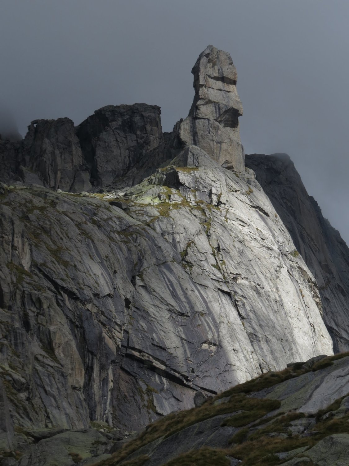 Wir besuchten den Gipfel im Rahmen der Mountain Wilderness Climbing Days. Da die meisten Routen im Tal noch nass waren, wollten wir was Neues entdecken und entschieden uns für den Torre Moai (Statuen/Volk der Osterinseln). Den anstrengenden, aber landschaftlich sehr lohnenden Aufstieg belohnten wir uns mit der Besteigung des Turms. Die Routen lagen dann am Nami (beim Rekognoszieren) schon im Schatten. Die SL1 von Religion Rebel sieht unwiderstehlich aus, ein 20m langer, leicht überhängender Riss (ca. 6c, komplett selber abzusichern)... aber immerhin scheinen die Stände nach neuerem Standard zu sein.
