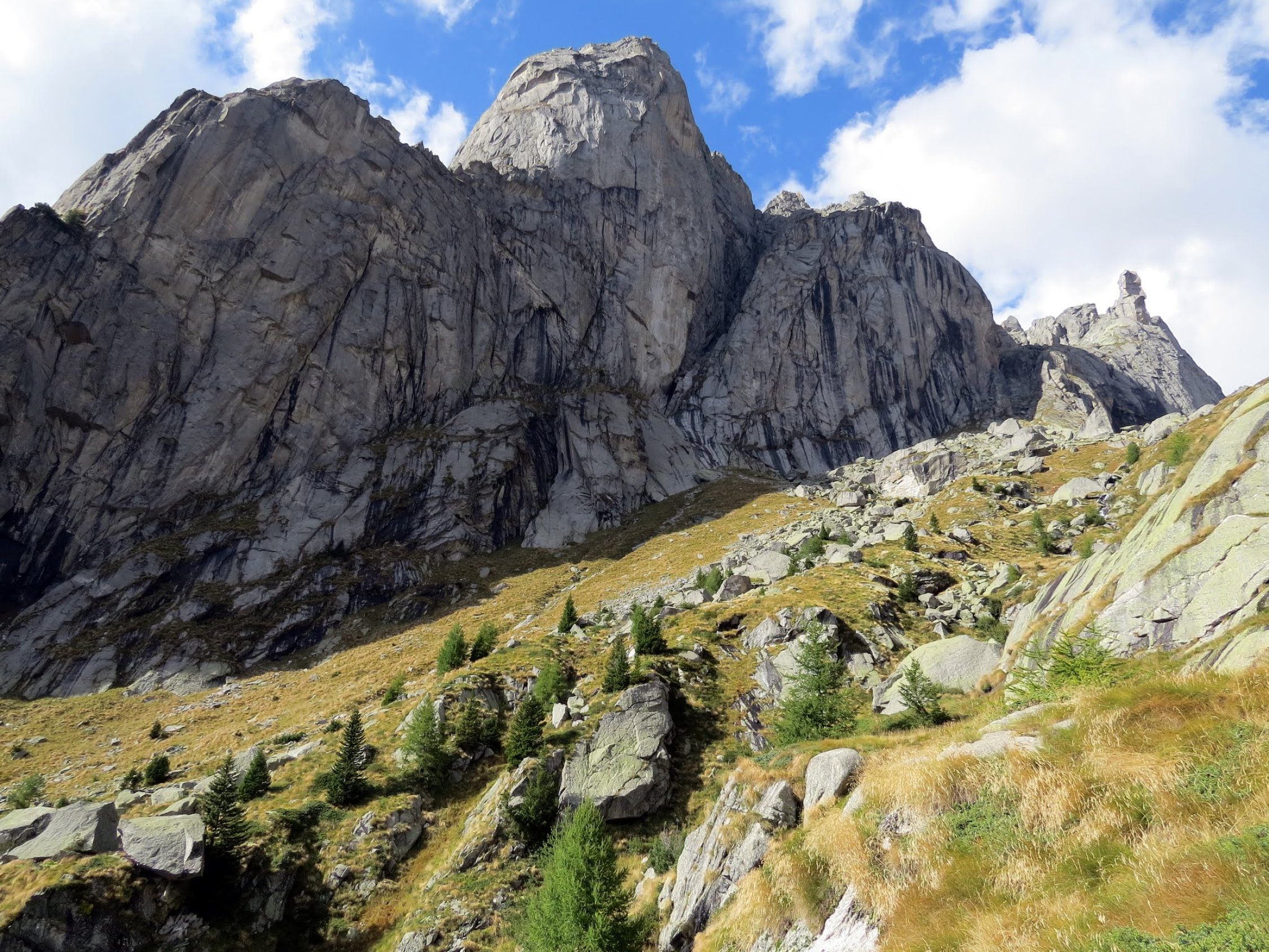 Klettergebiet Val di Mello (1050m): Torre Moai, ca. 2700m