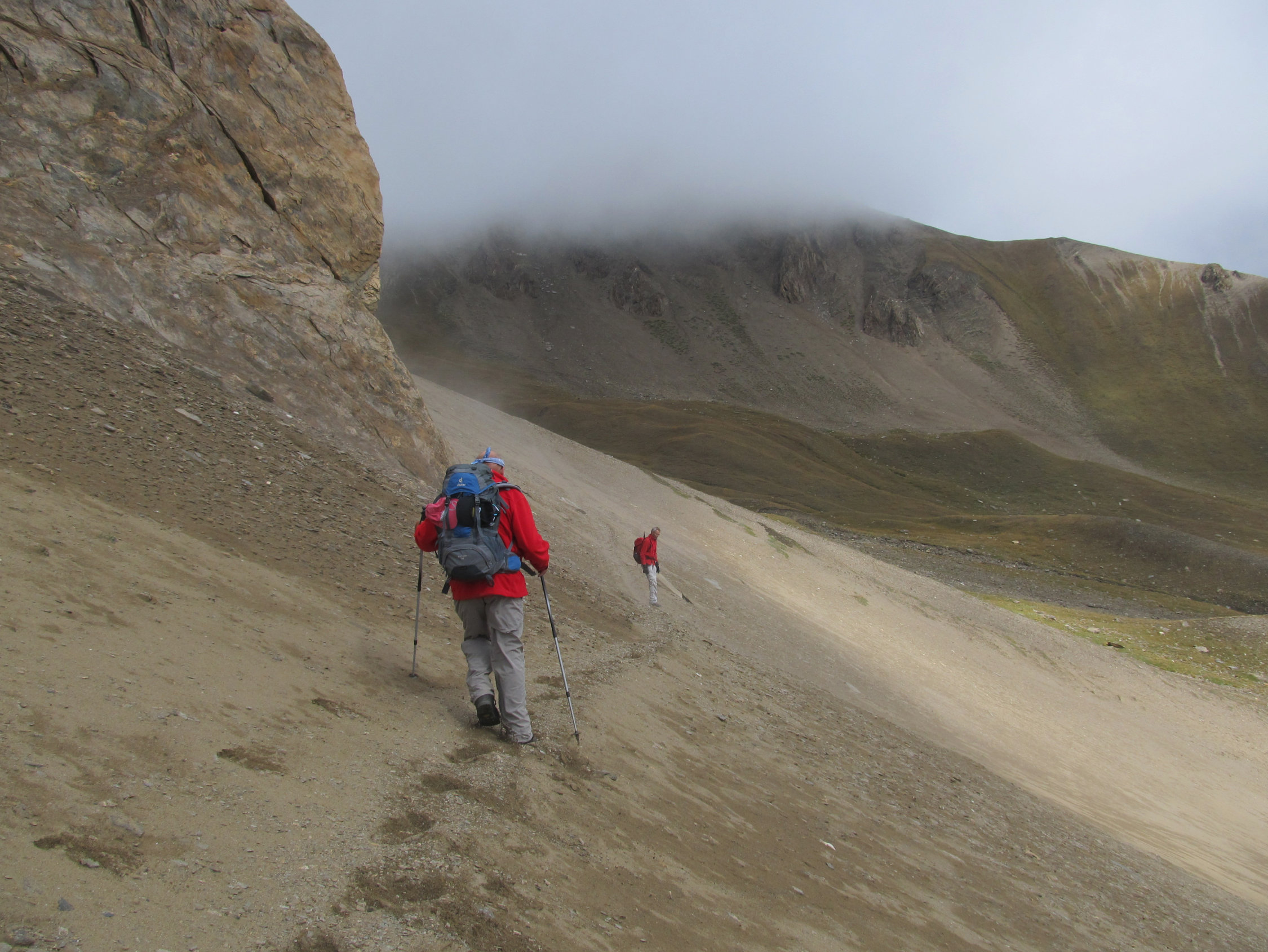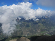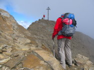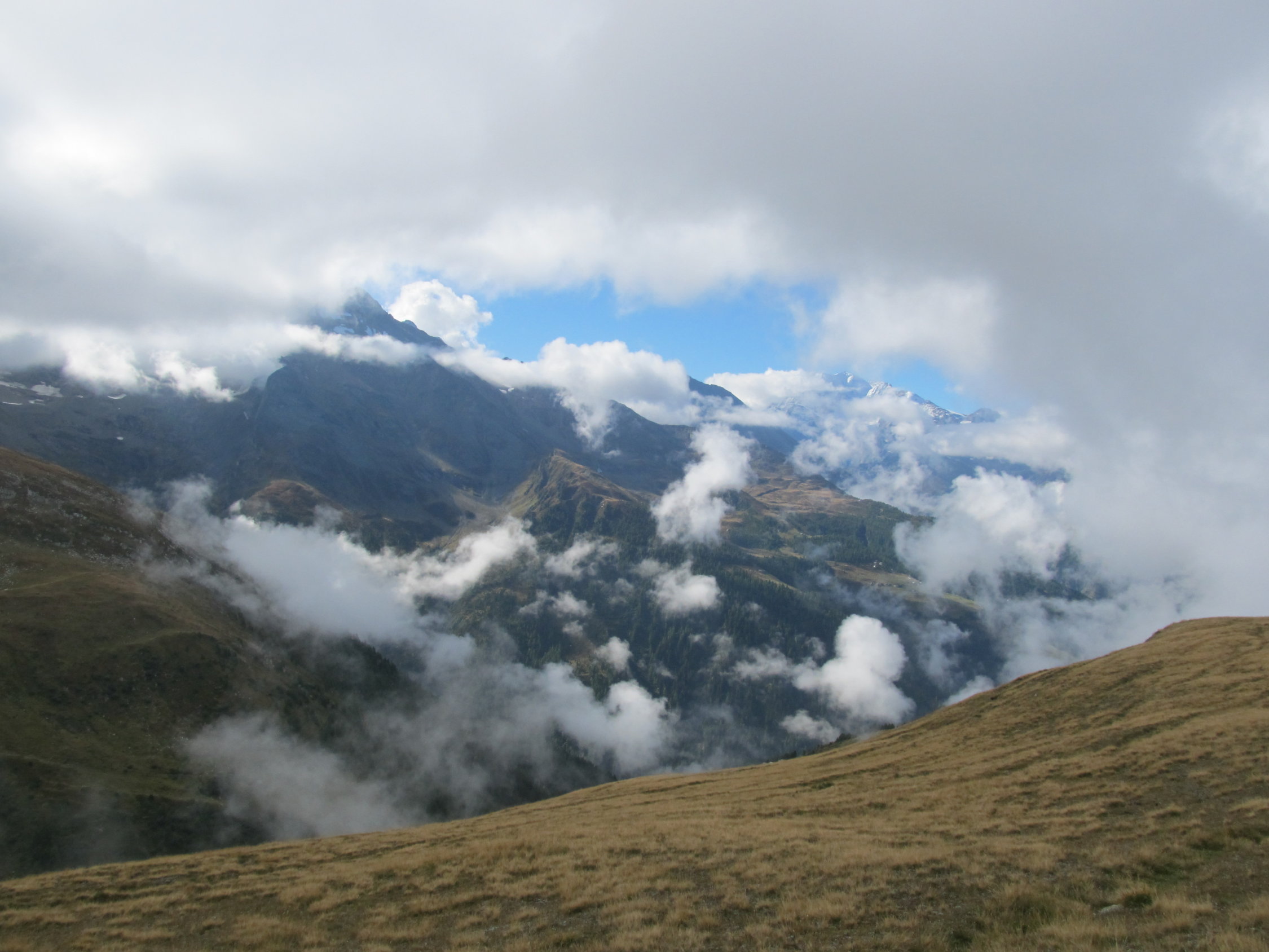 Nebliger Start mit genialen Weitblickfenstern. Etwas zügig auf der Passhöhe. Weiterweg: Der Sonne entgegen. Gipfel warm und windstill mit schönen Tiefblicken.