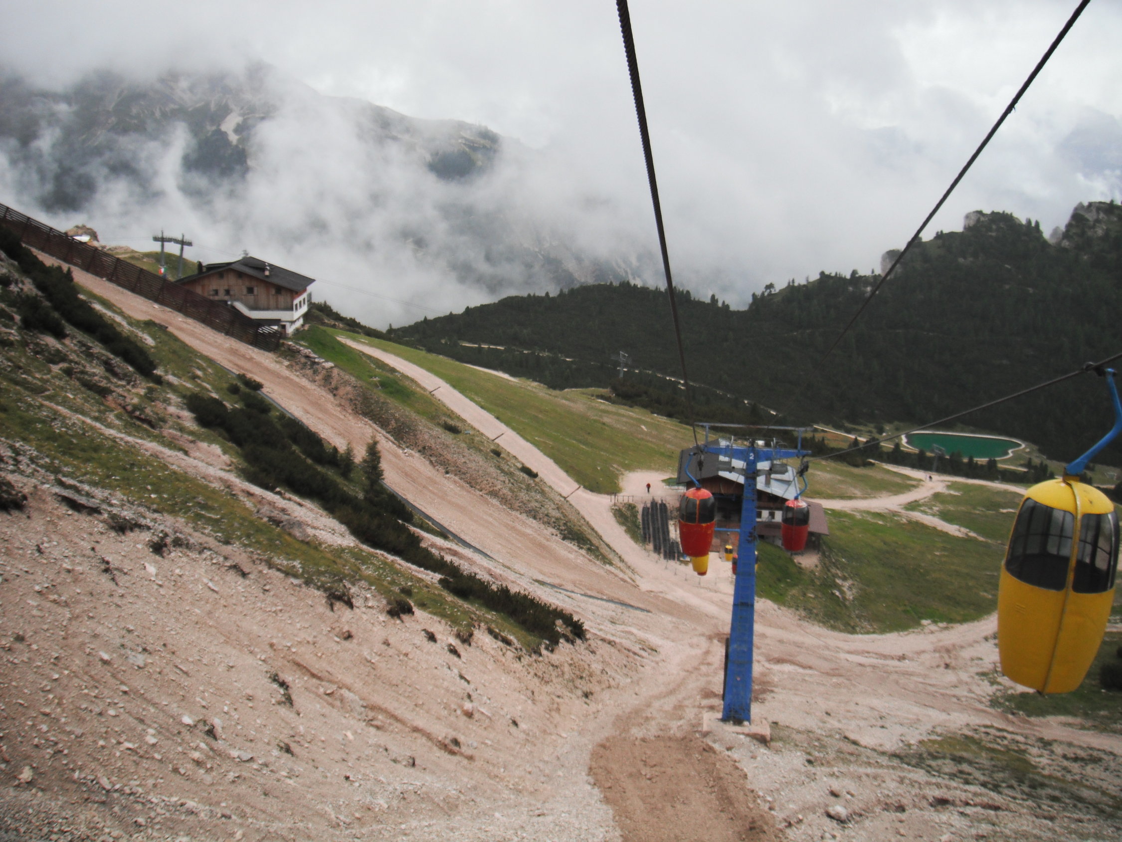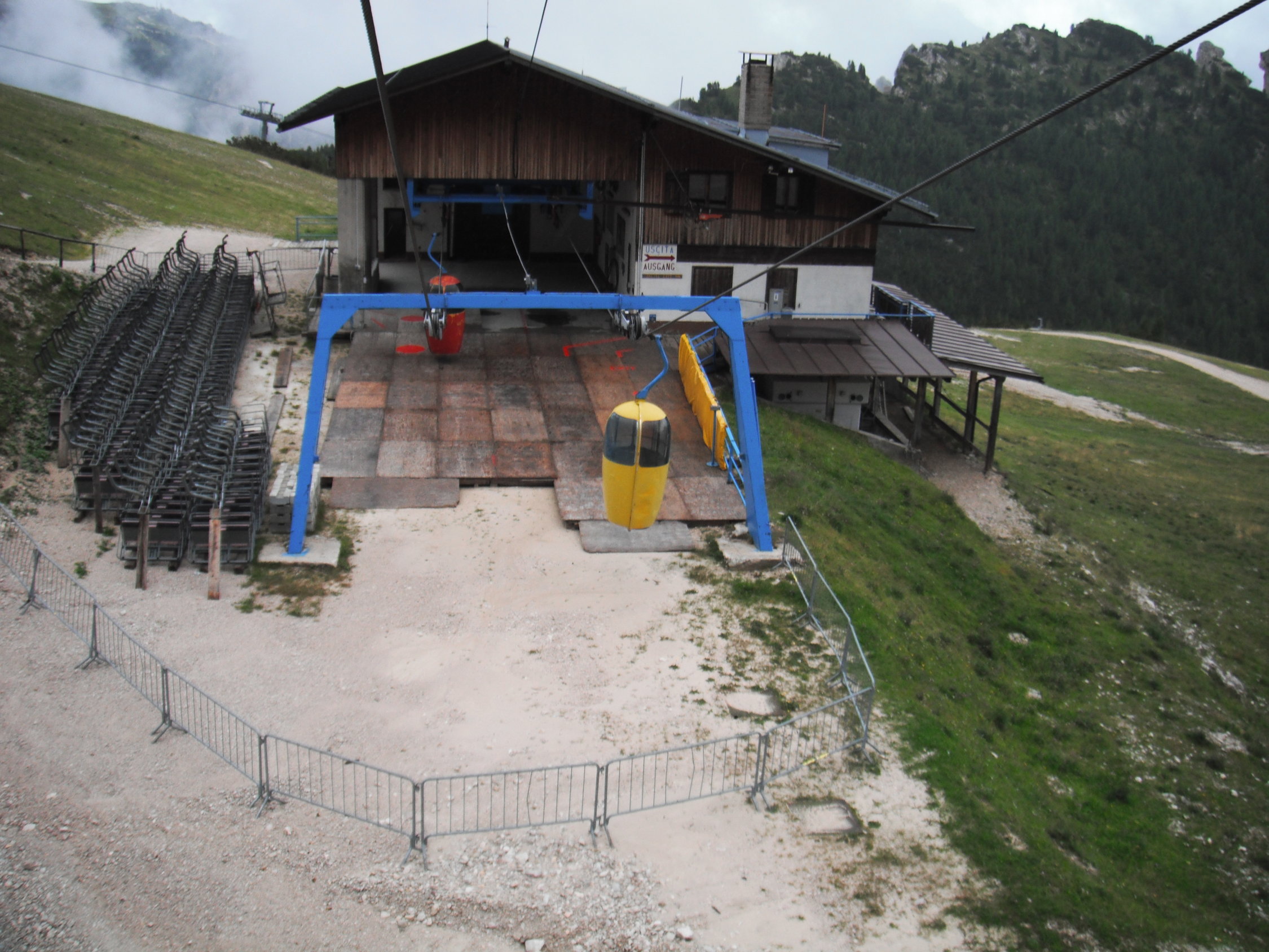 Letzte Talfahrt mit der Gondel: 16:45 Uhr, mit dem 4er Sessel-Lift um 17:15 Uhr. Hatte ich gerade so noch geschafft nach spätem Tourenbeginn um 13:00 Uhr vom Parkplatz, nachdem der Regen mal nachließ. Berg- und Talfahrt von Rio Gere nach Staunies und retour kostet € 23,50 (Stand 2015).