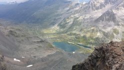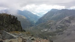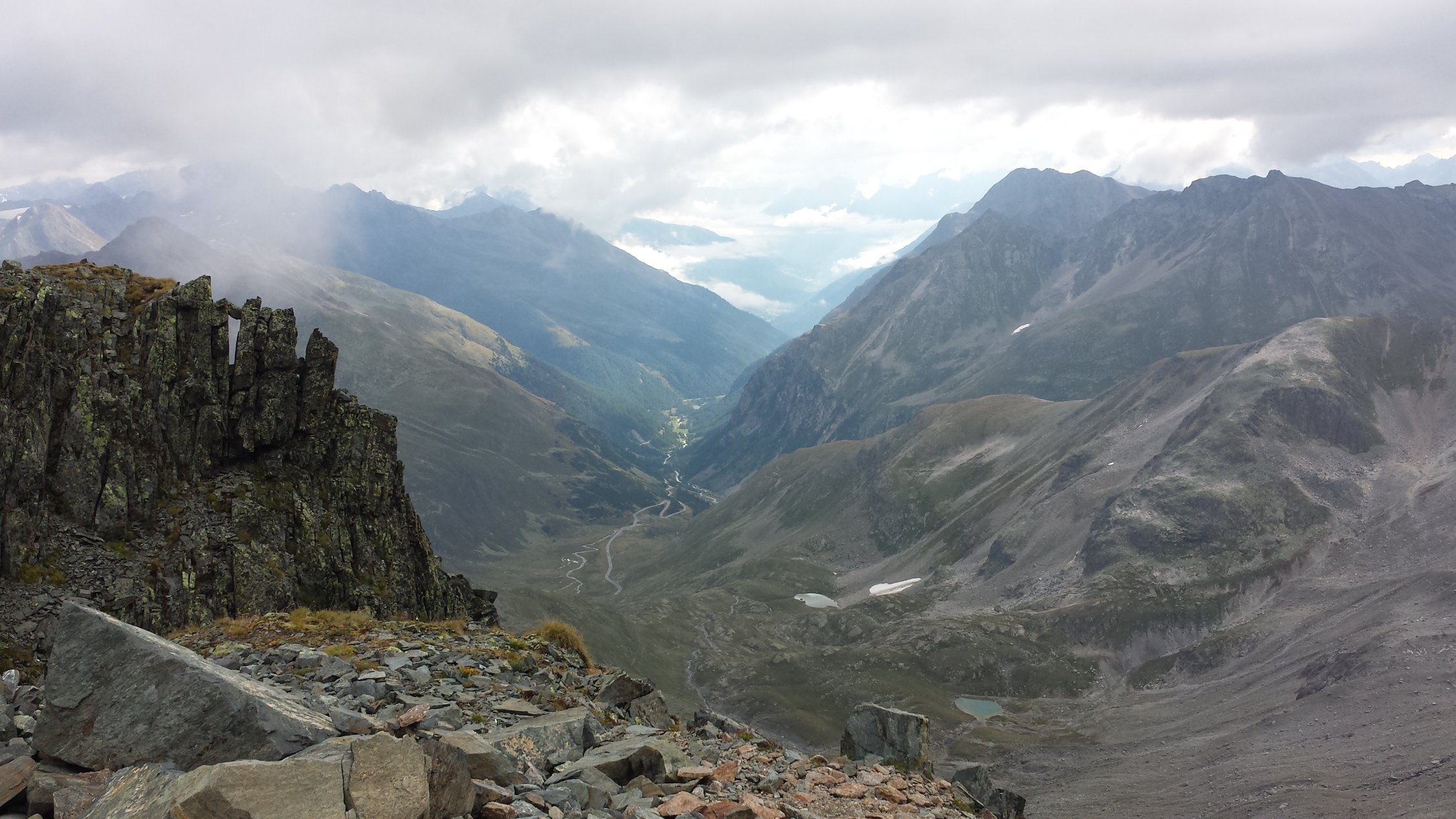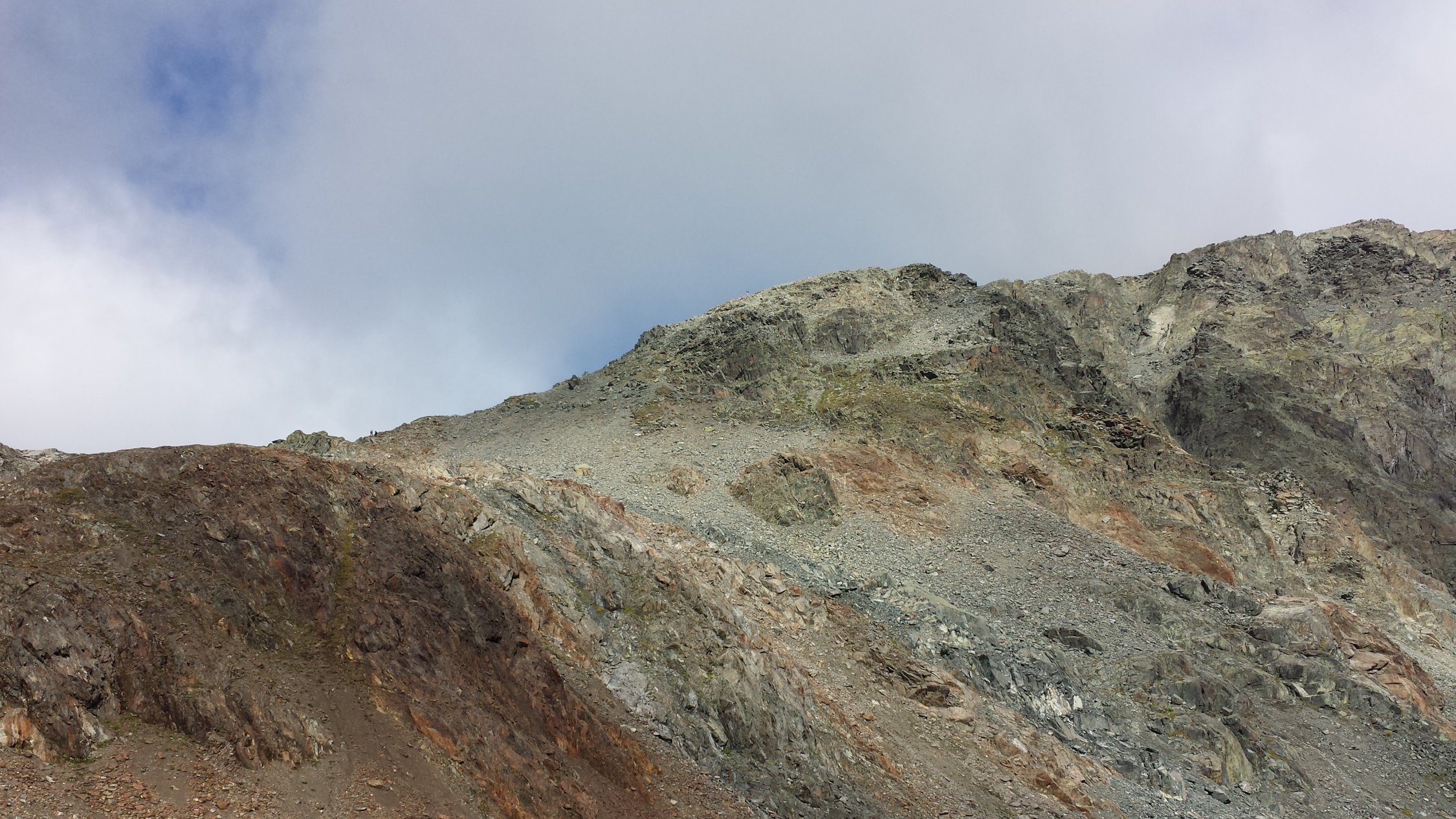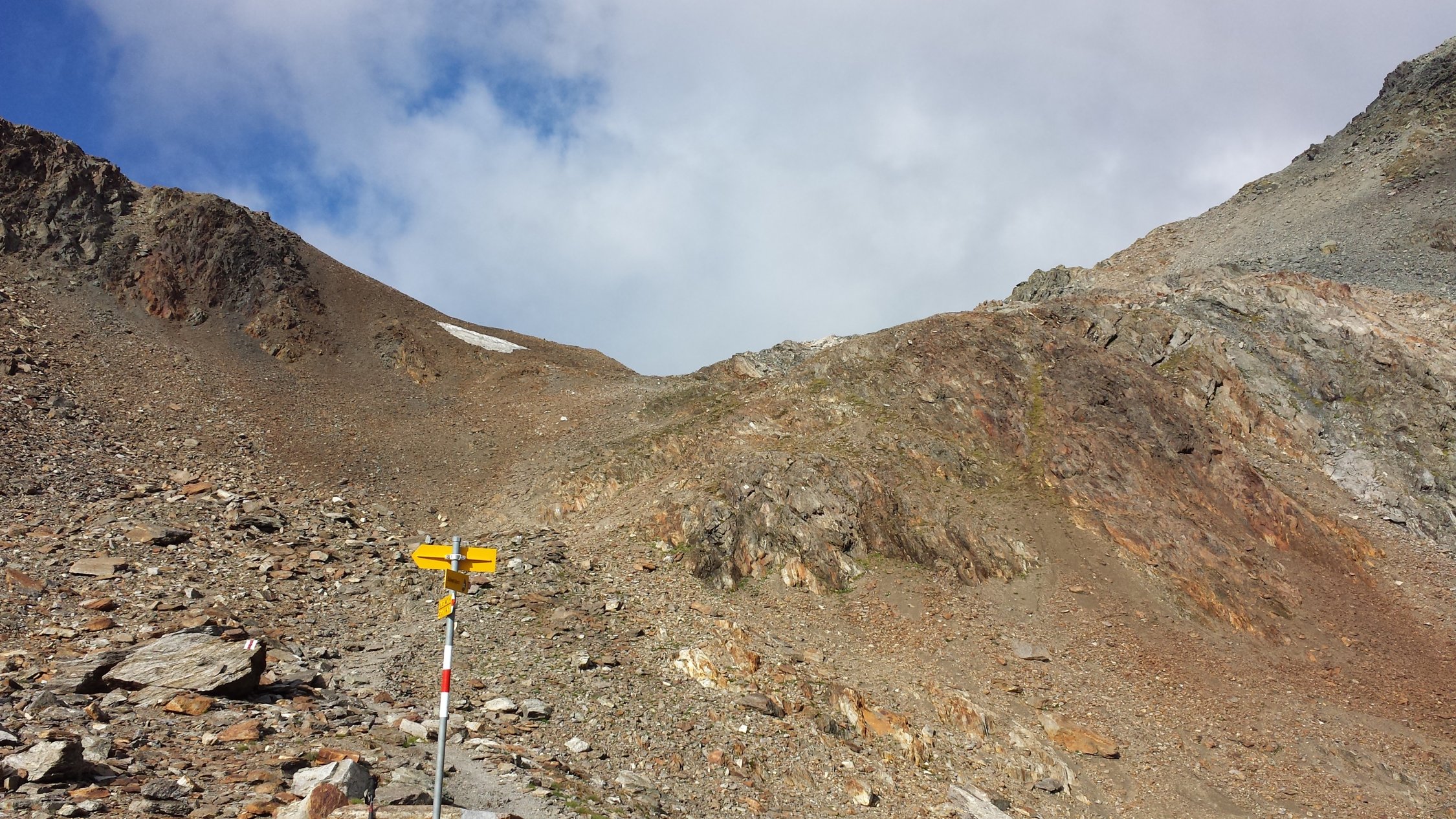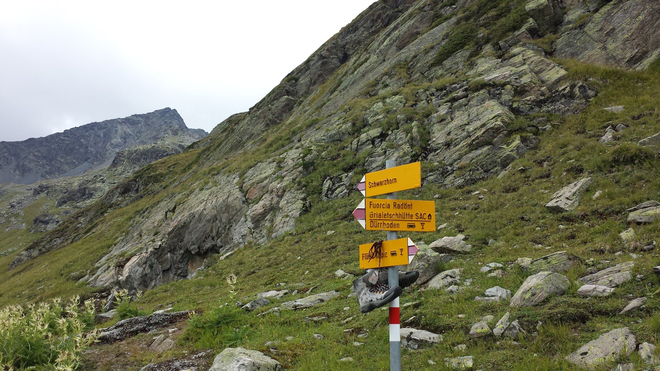 Die Sonne ist durch Wolken verdeckt und ab Schwarzhornfurgga (2880) ist es sehr windig.