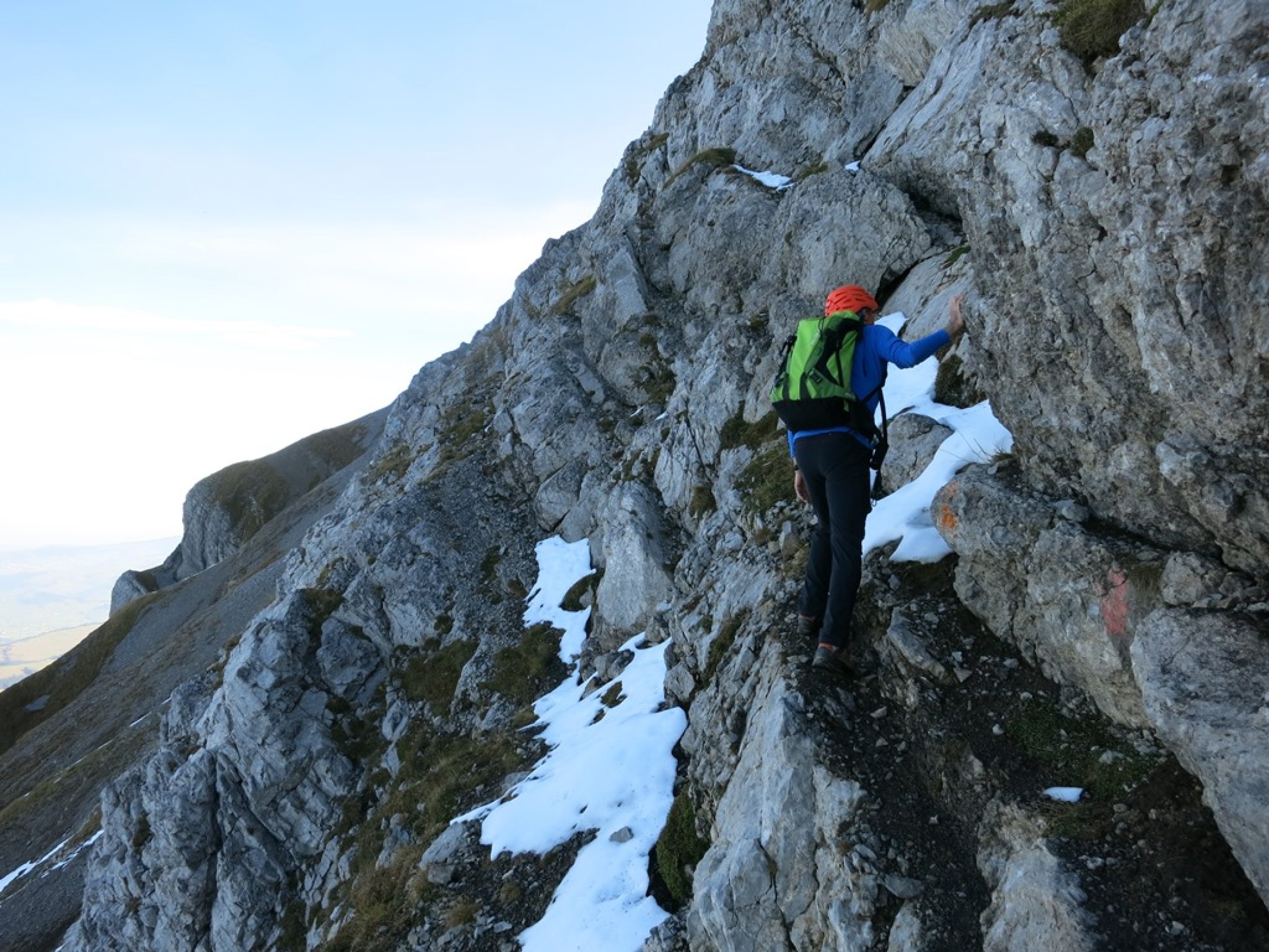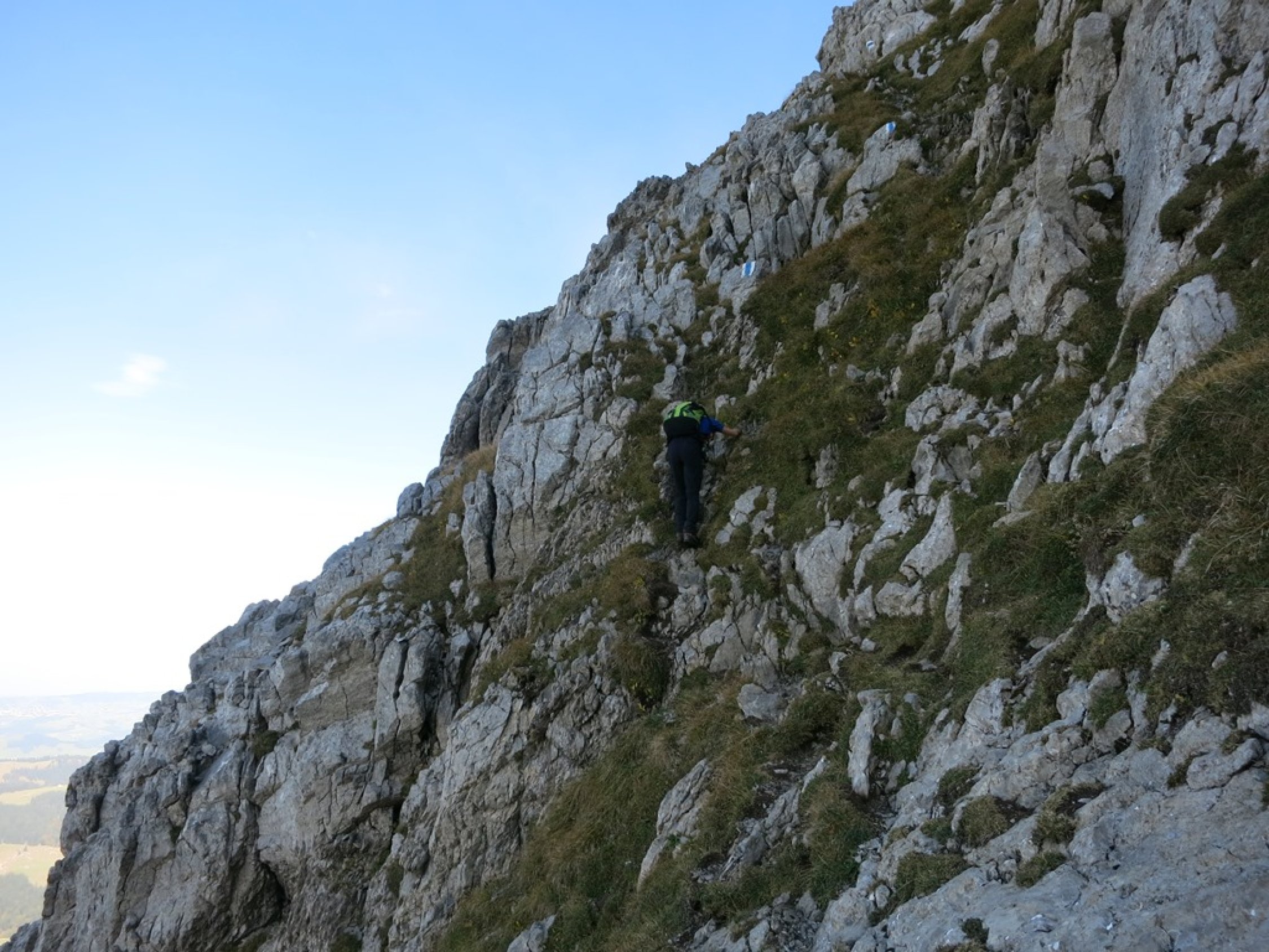 Nasenlöcher-Route im Abstieg ist nicht jedermanns Sache. Erst recht nicht so wie heute bei den matschigen Wegen.