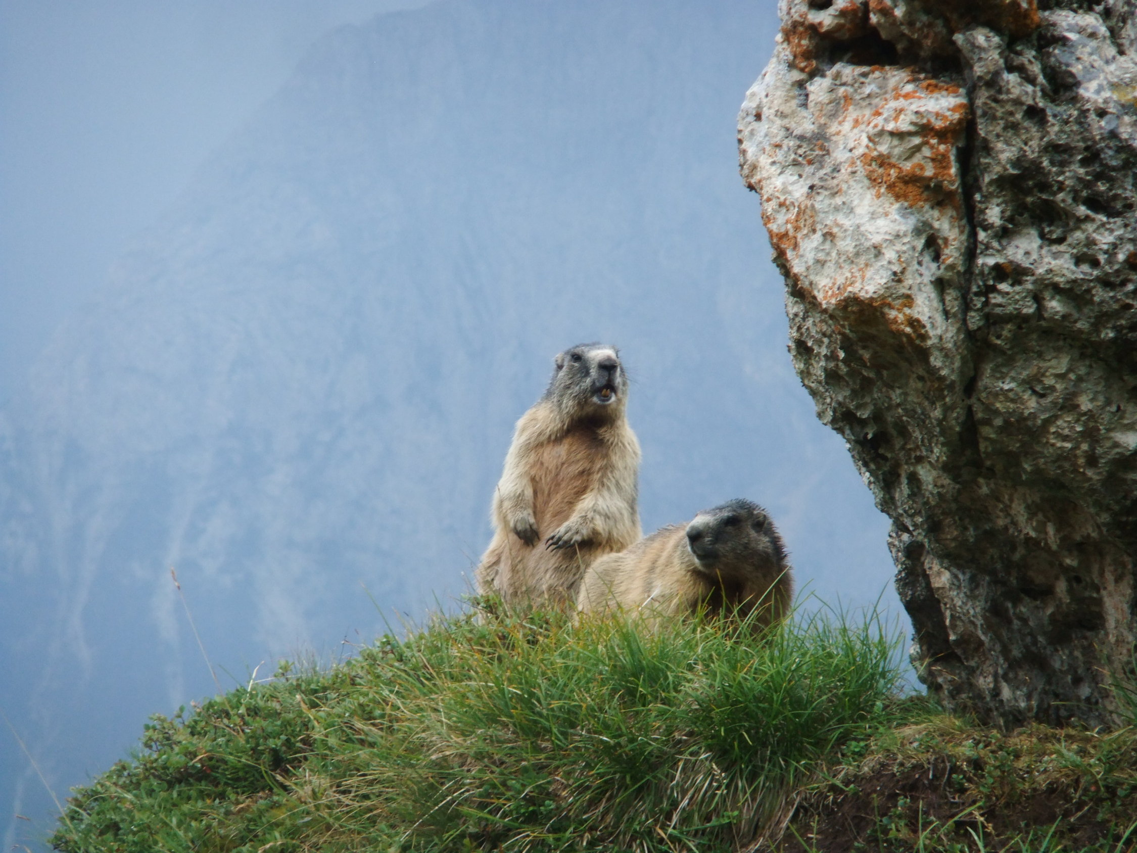 Die Murmeltiere auf der Wiese neben dem Einstieg sind nicht gerade scheu.