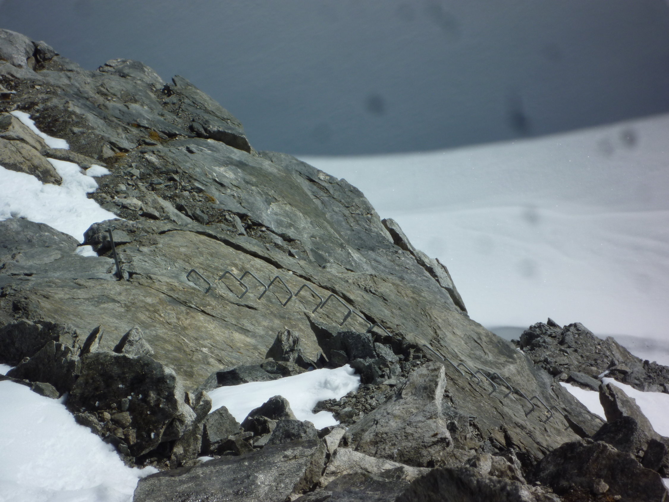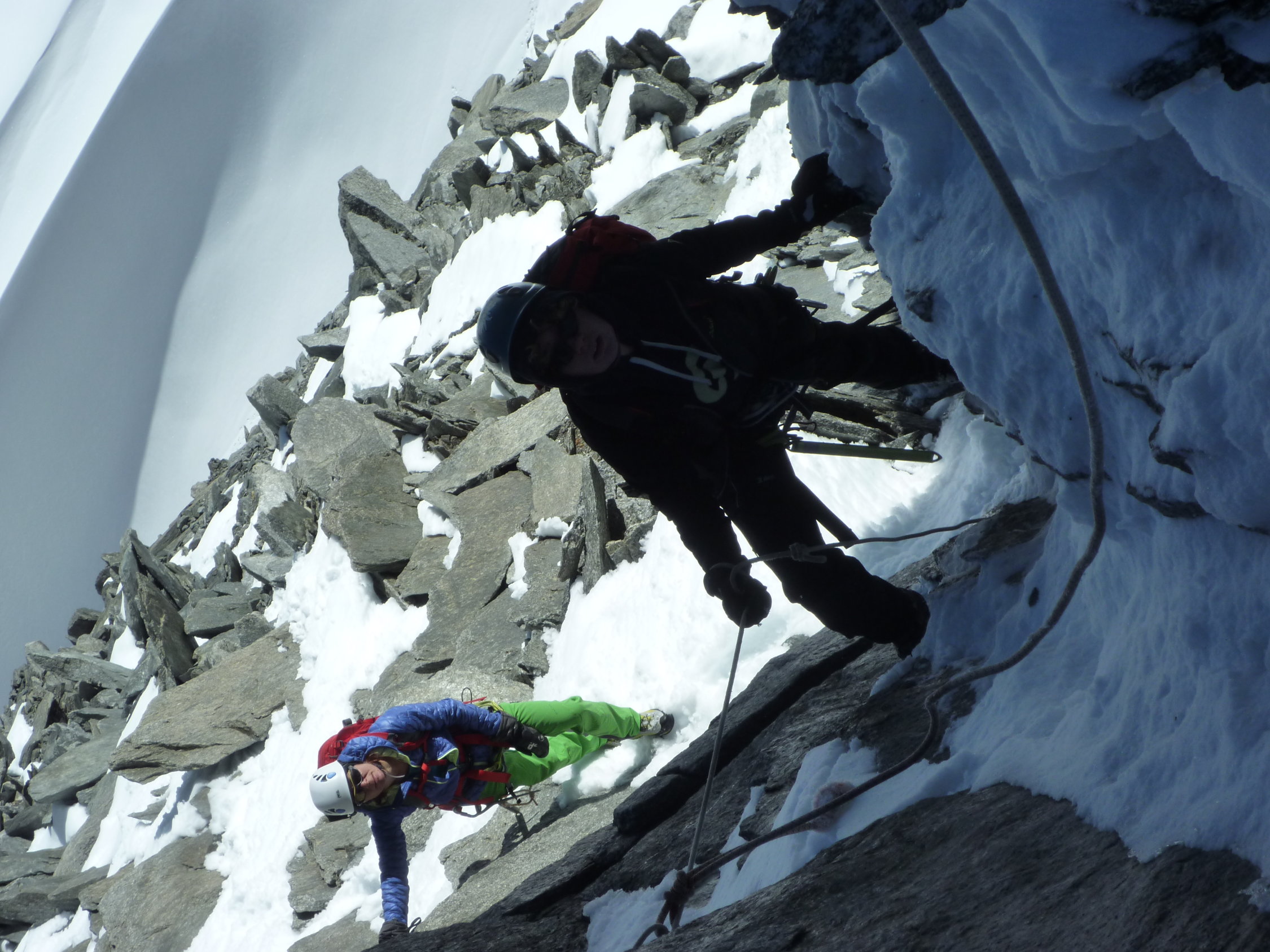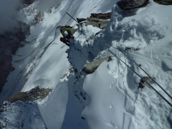 Fixseil im Ausstieg auf N-Grat konnte dem Schnee noch entrissen werden.