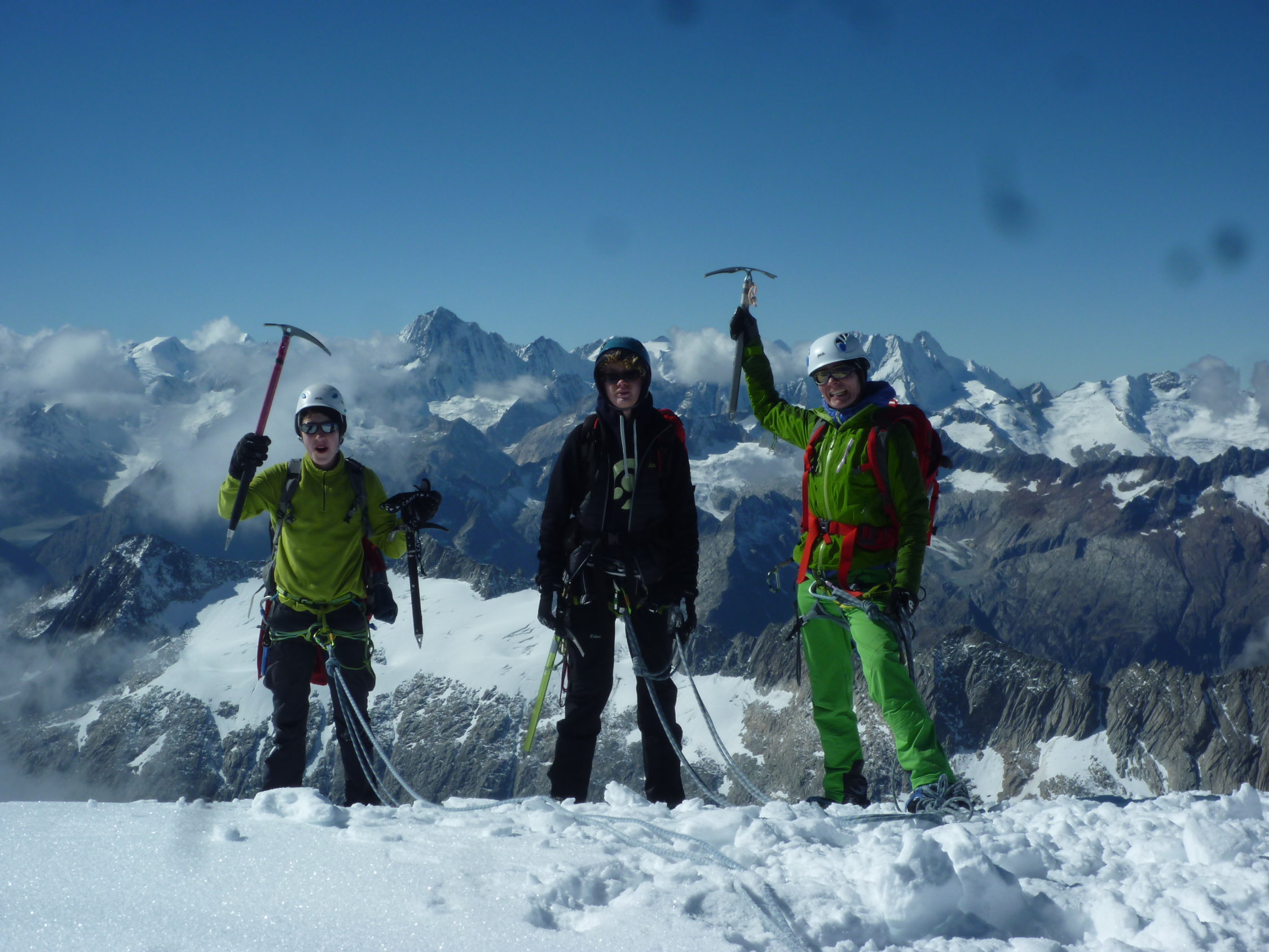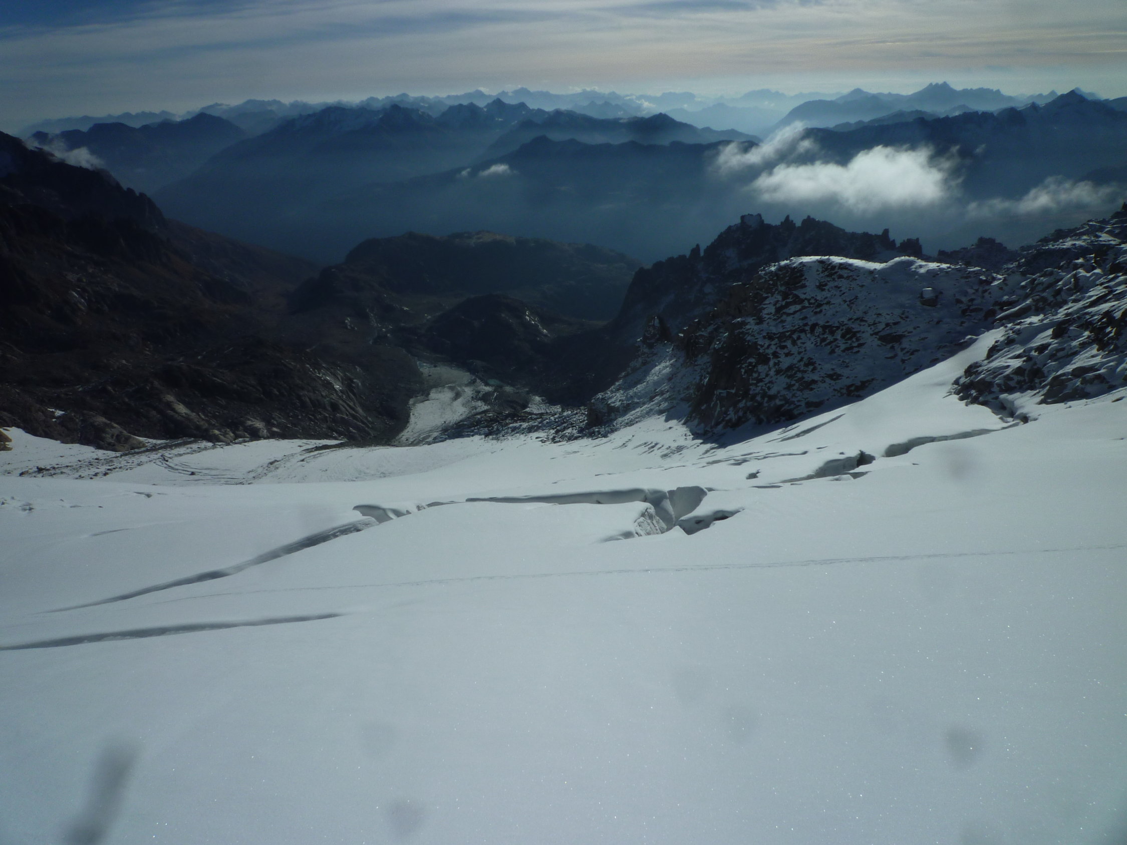 Auf dem Tiefengletscher ab 2700 eine nach oben hin dicker werdende Neuschneeschicht (5-30cm) mit morgens tragfähigem Harschdeckel.