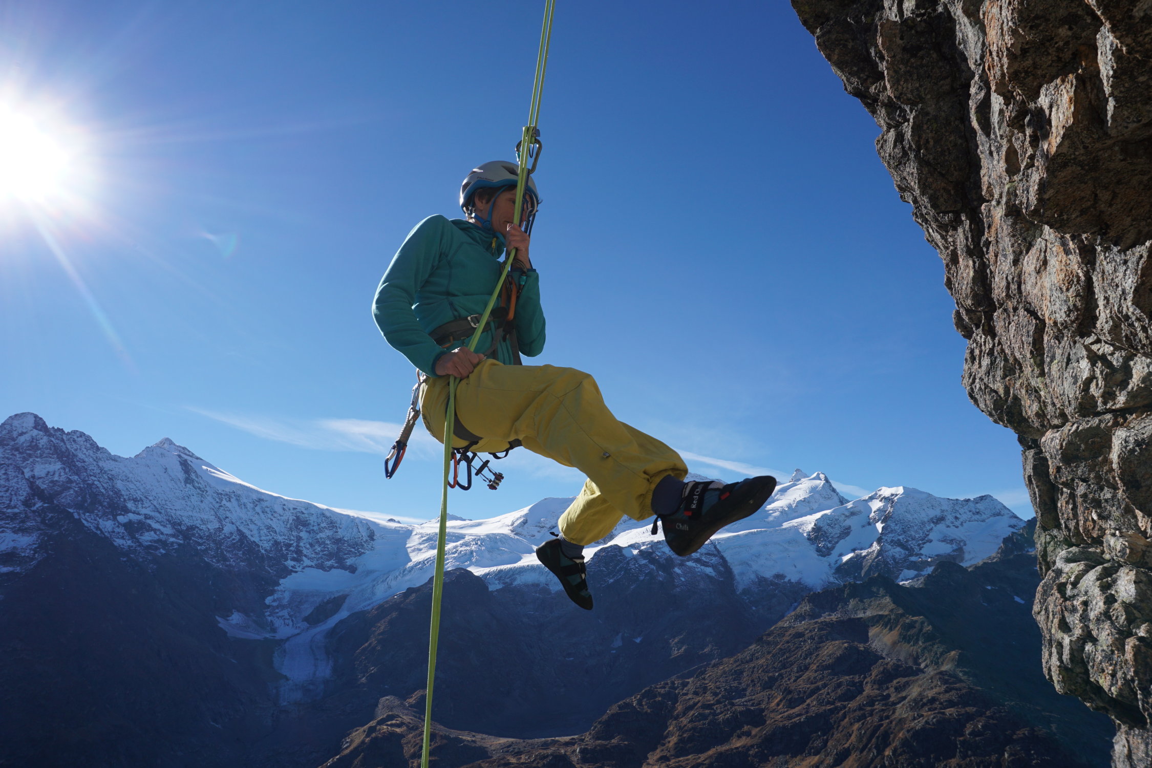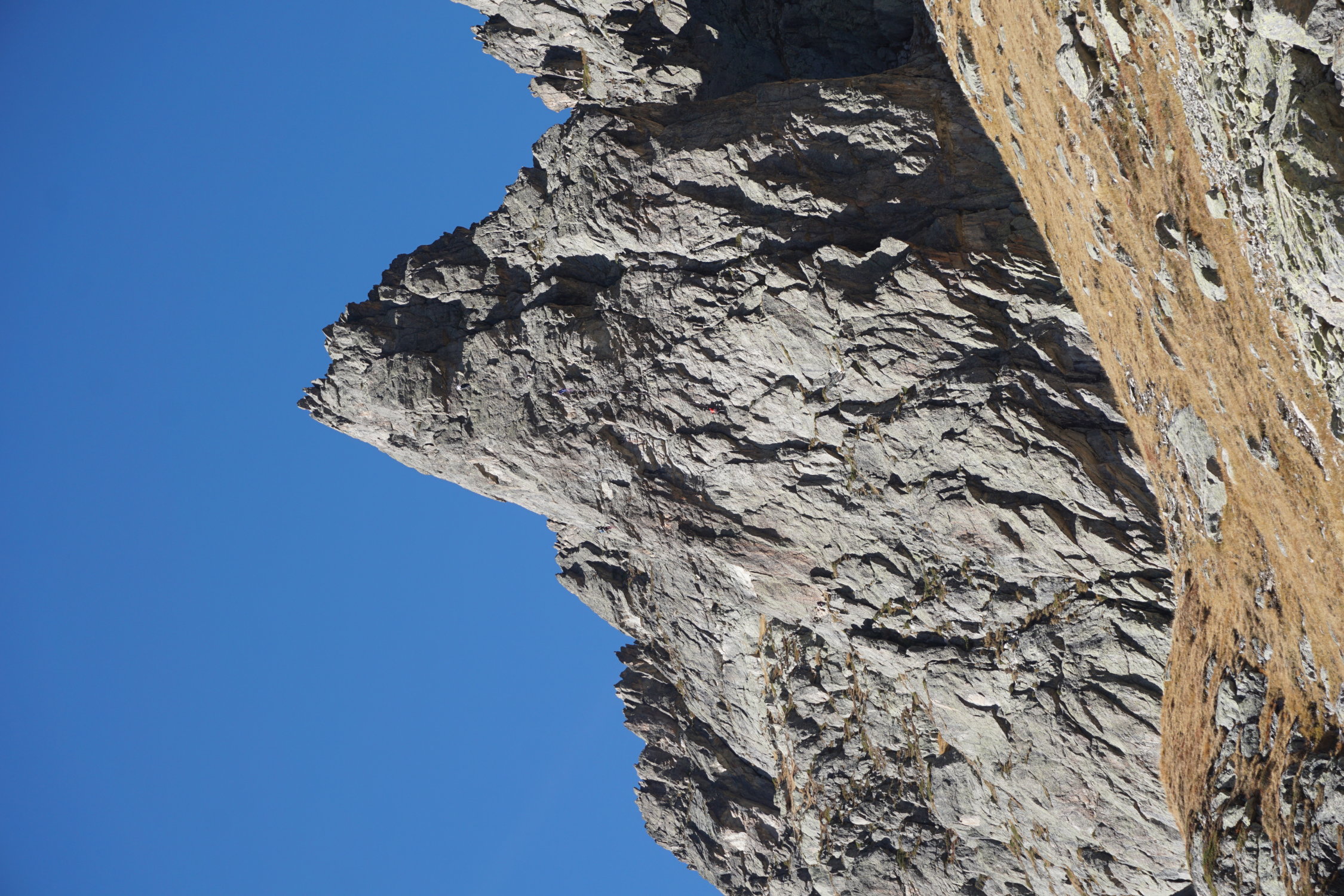 Hatten die Route vor 26 Jahren (1989) unter Mithilfe von T.Wyss, M.Burgener & R.Kaufmann von unten begangen.