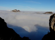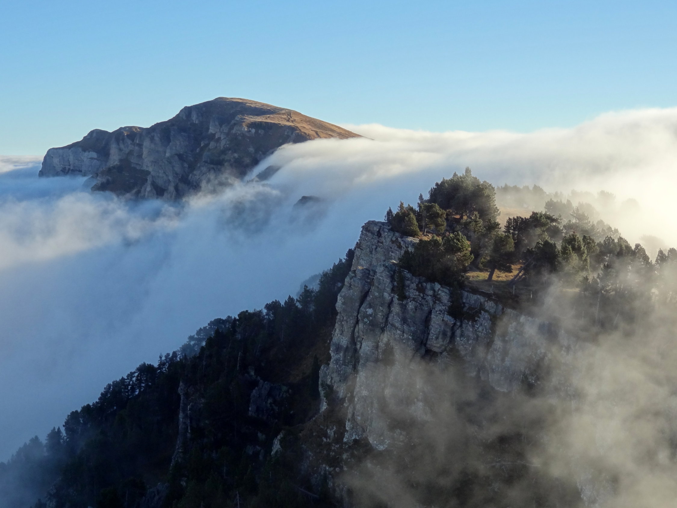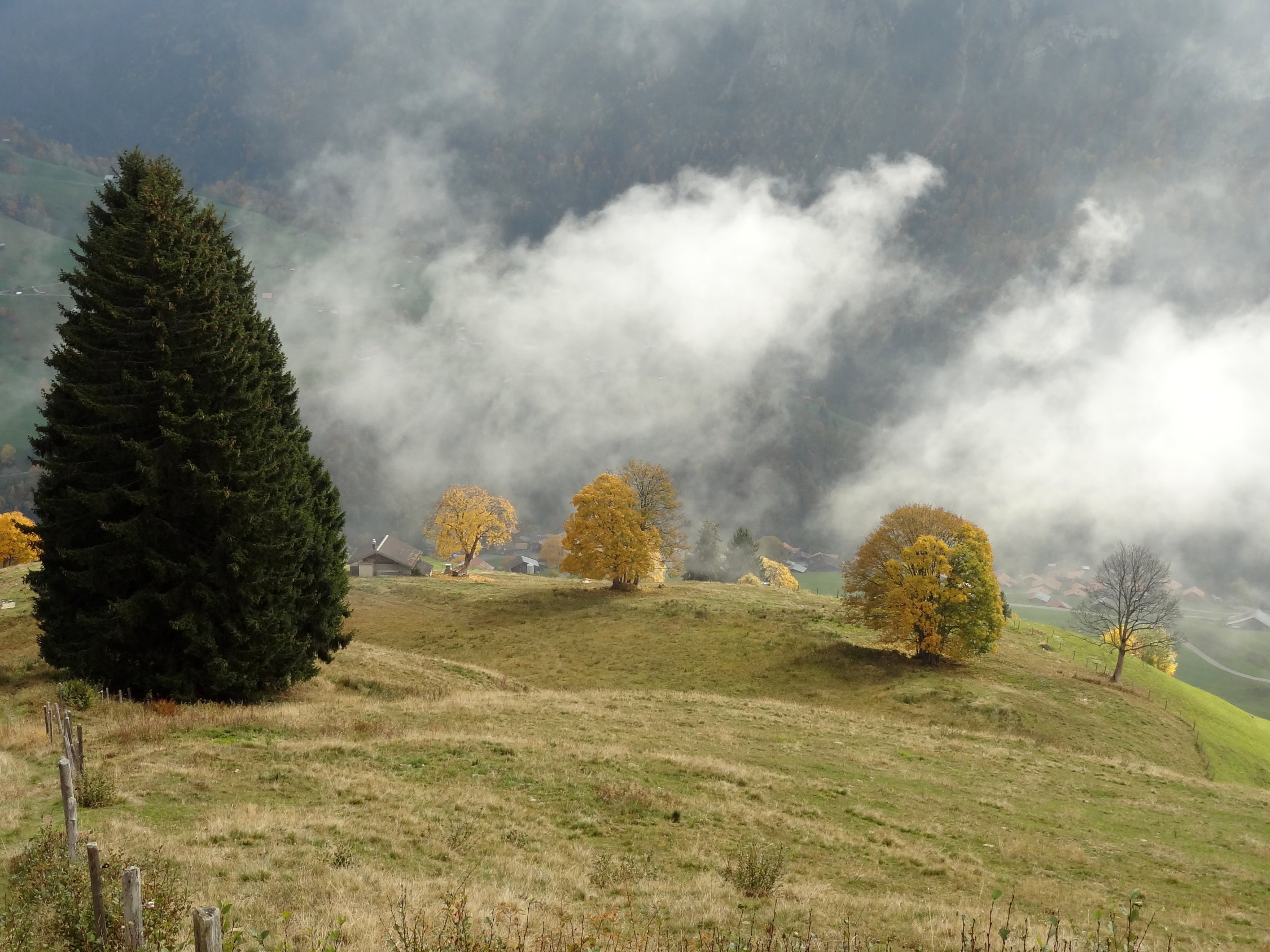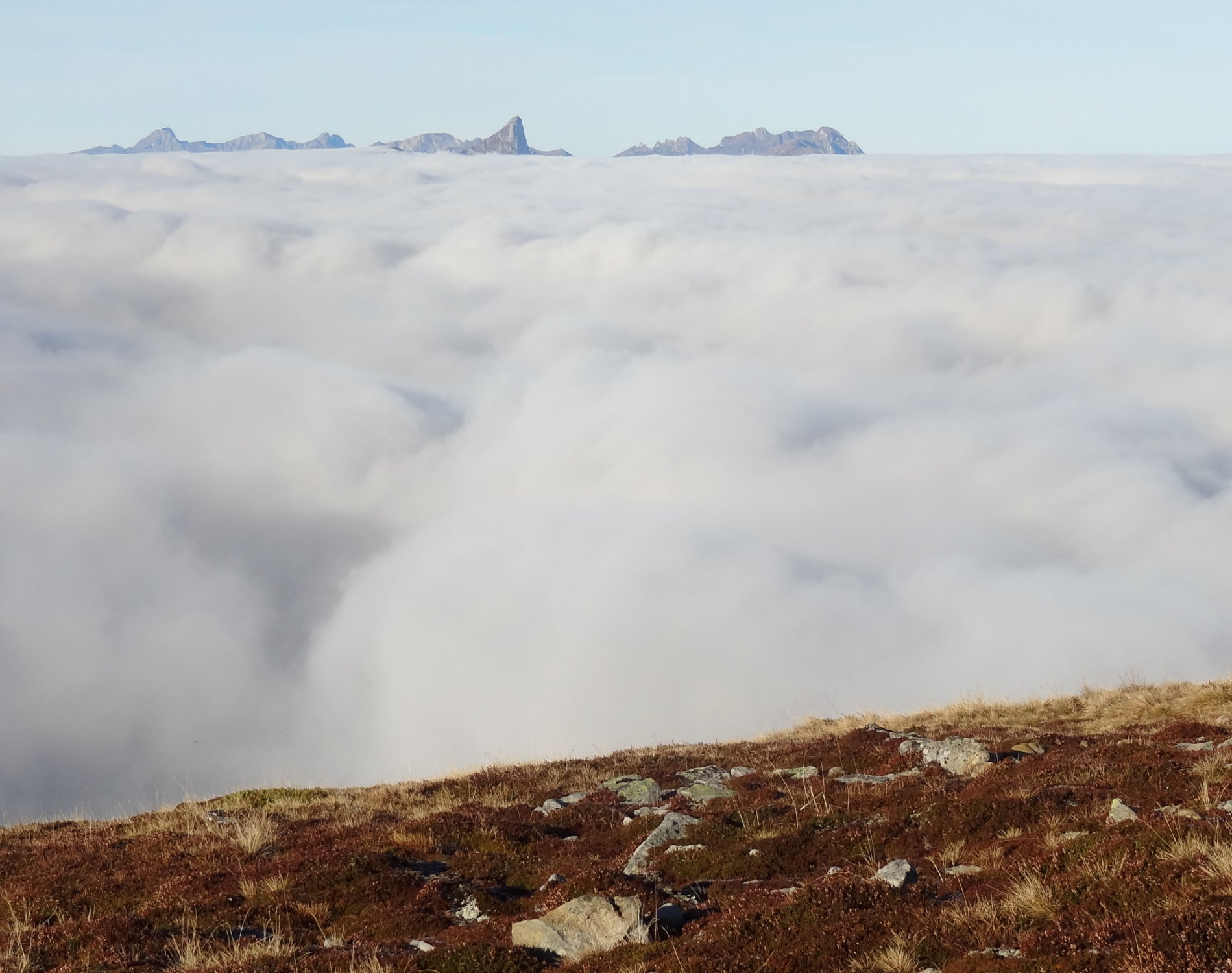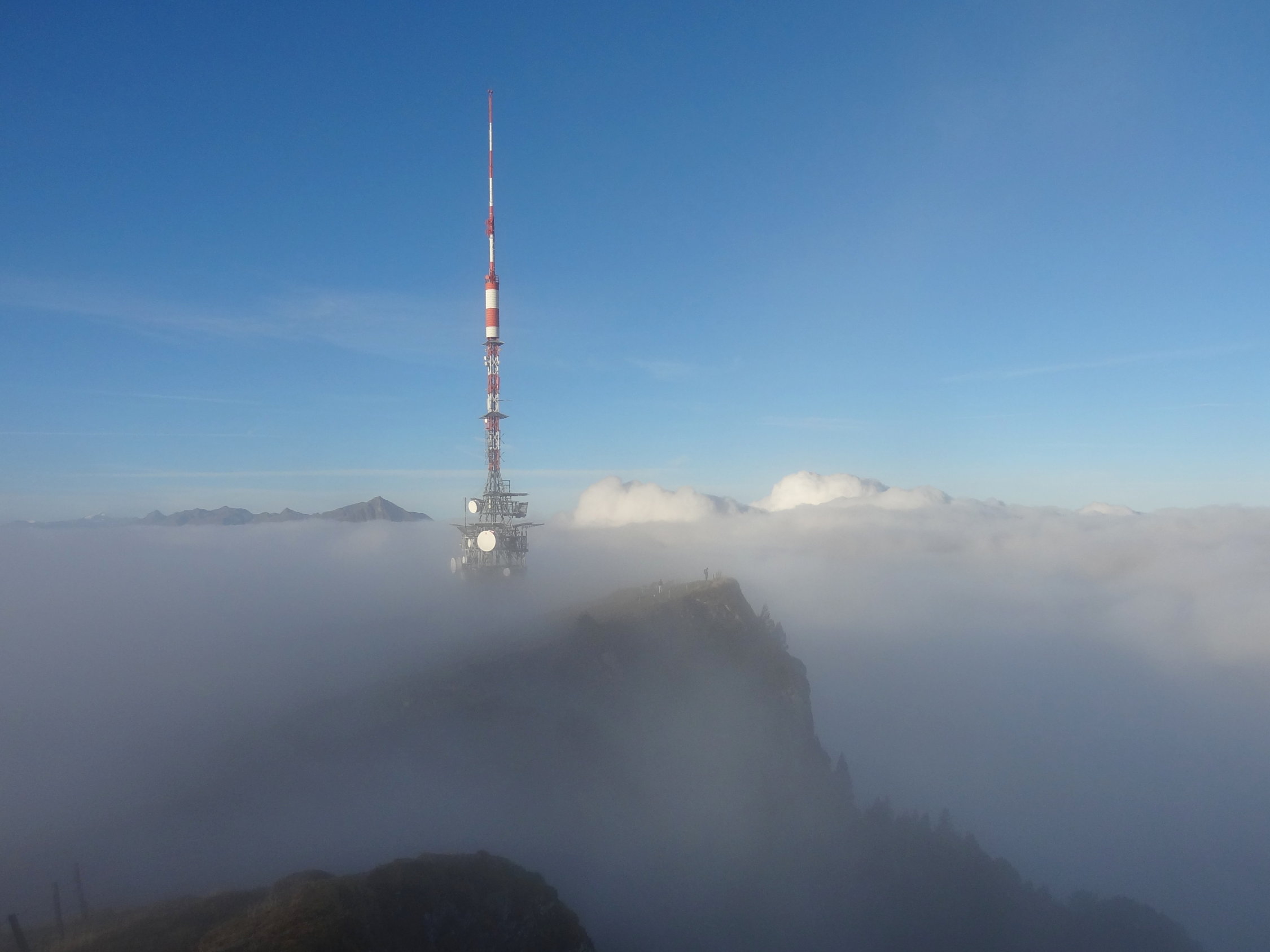 Sehr interessant. Niederhorn Gipfel um 0830 knapp nebelfrei. Auf dem ganzen Weg waren nur die Erhebungen über 1900m. nebelfrei, sonst wanderte man vom einen Nebel"Wasserfall" zum anderen. Darüber schönste Sonne. Eine fantastische Stimmung.