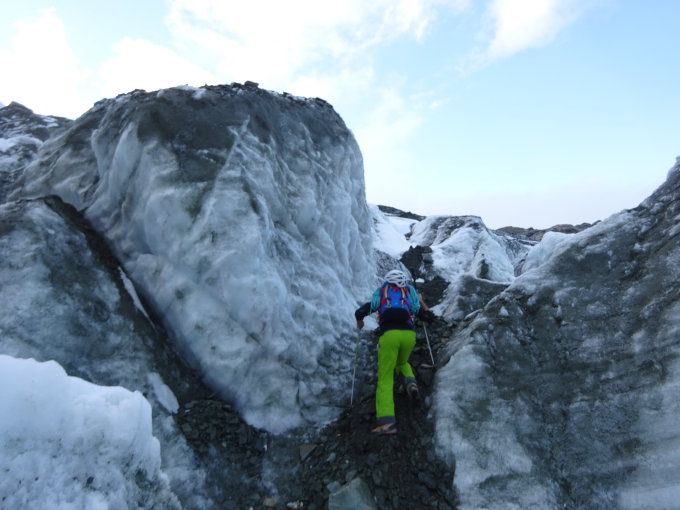 Abstieg über Hofmannkees sehr spaltig und steil.
