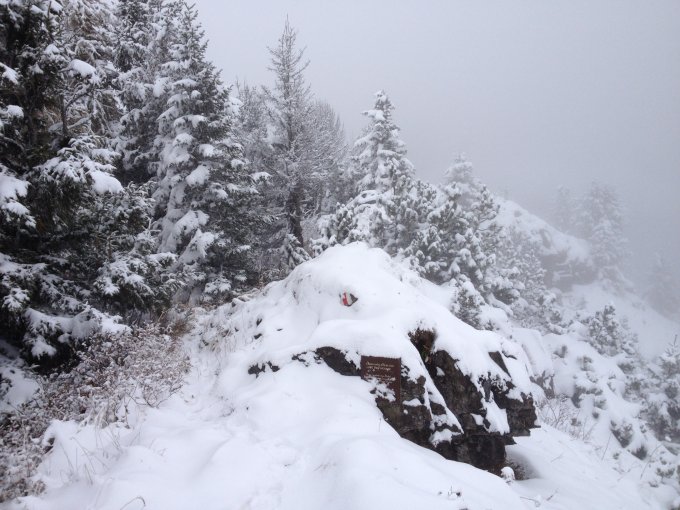 Regnerisch und Neuschnee ab 1550m. 5 - 15cm. Blätter, Nässe und Schnee bilden eine gute Gleitschicht. Aufgepasst. Winterliche Verhältnisse.