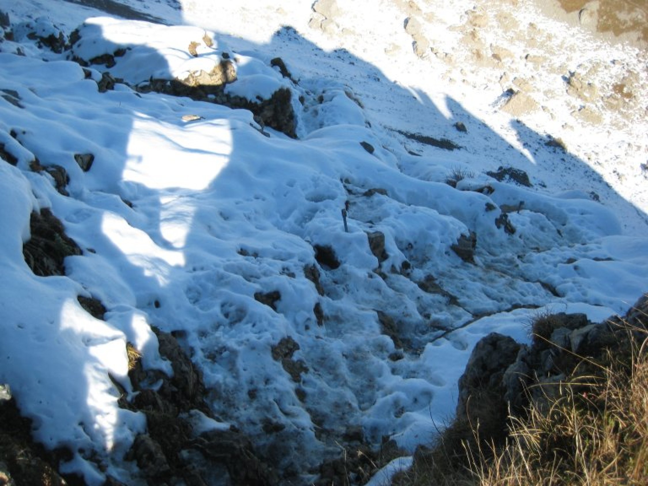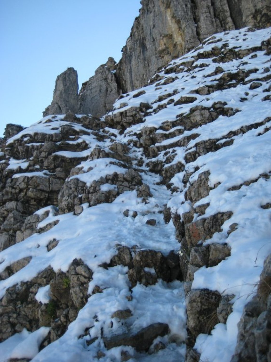Alles Top trocken bis auf den NO-Anstieg zum Plateau hoch. Dort durch div. Begehungen z.T. Vereisung da fast den Ganzen Taf im Schatten. Die Drahtseile waren abgebaut auf beiden Seiten des Berges. Wer Grödel hat sollte sie mitnehmen. Heute wären die Stahlseile noch nützlich gewesen. Übergang Pellingerköpfle zum Hählekopf etwas Schnee aber nicht störend. Wetter genial mit allerbester Fernsicht.