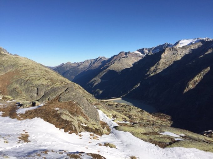 Der Schnee liegt bereits ab dem Parkplatz Grimselpass bis hinauf aufs Sidelhorn.