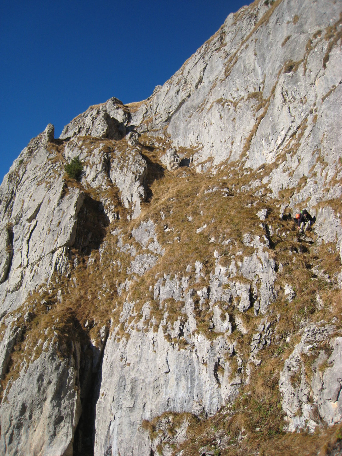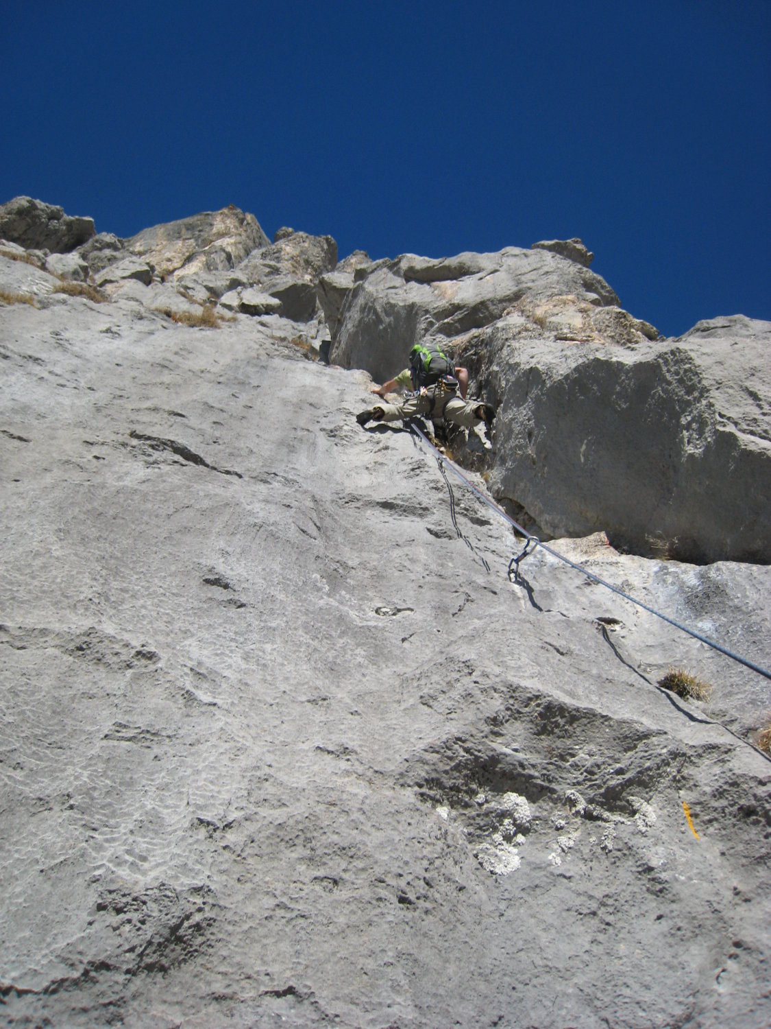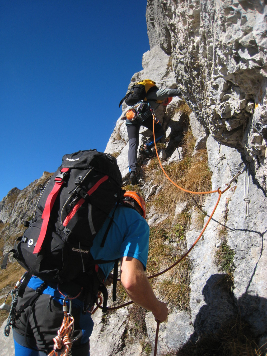 tip top. Alles furztrocken. Toll saniert - wo man sich einen (Bohr-)Haken wünschen würde, ist einer. 9 Exen, mehr nicht. Abseilen nur, wenn keine andere Seilschaft in der Route ist, es fliegen unweigerlich Steine mit. Die Kletterstellen, frei, sind definitiv 6a, Mitdenken erwünscht und nichts für Klettergarten-Kletterer. Einfach eine tolle Route, irgendwie dunkt mir aber nicht allzu oft begangen - je mehr Begehungen, desto mehr würde das Geröll in den SL herausgespült werden. Abstieg NW-seitig im Schnee, über Hagelistock und Leiterliweg (sollte man die Fussspuren sehen können, sonst ist man schnell falsch) ausgesetzt und schnell zu Alp Gand und retour zur Bahn.