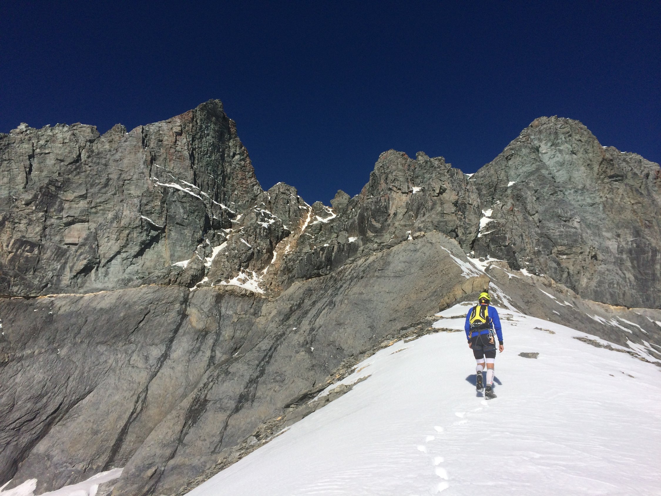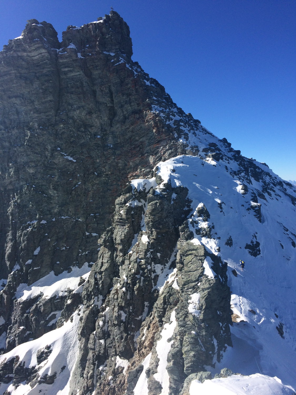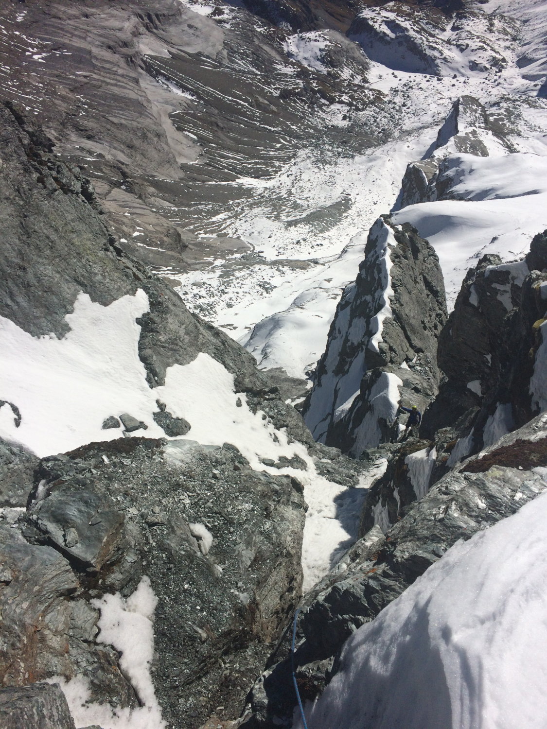 Bestes Wetter heute. Mit dem Bike bis zur Ringelspitzhütte problemlos (manchmal musste geschoben werden). Ab etwa 2000m Schnee. Immer wieder Spurarbeit und mit einer zweiten Seilschaft abgeweschselt. Der Mittelgrat selbst ist vorwiegend aper und kann gut begangen werden. Seilsicherung bei uns heute dennoch ein Muss. Steigeisen waren nicht nötig. Nachdem es zunächst sehr warm war, kamen kurz nach dem Einstieg in den Mittelgrat Windböen auf. Sehr unangenehm und kalt. Am Ringelfirn oben ewa 30cm Schneeauflage (noch nicht gesetzt). Sensationelle Rundsicht vom Gipfel. Abseilstellen alle schneefrei und gut gefunden.