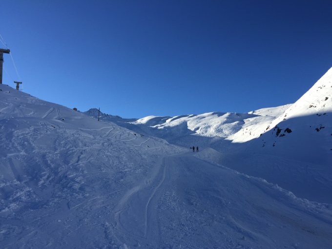 Dann weiter zur Geisterspitze, die war pistenartig ausgefahren. Problemlos rauf, wunderbare, ja phantastische Aussicht rundherum, bloss den Geistern waren vermutlich zu viele Leute da, ich hab keine gesehen :-). Abfahrt bis zum Stilfserjoch mehrheitlich auf der Piste, oder pistenähnlich, problemlos.