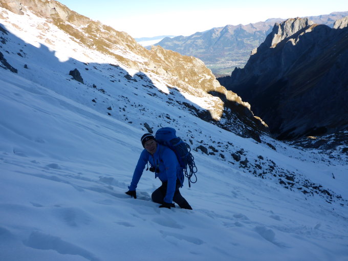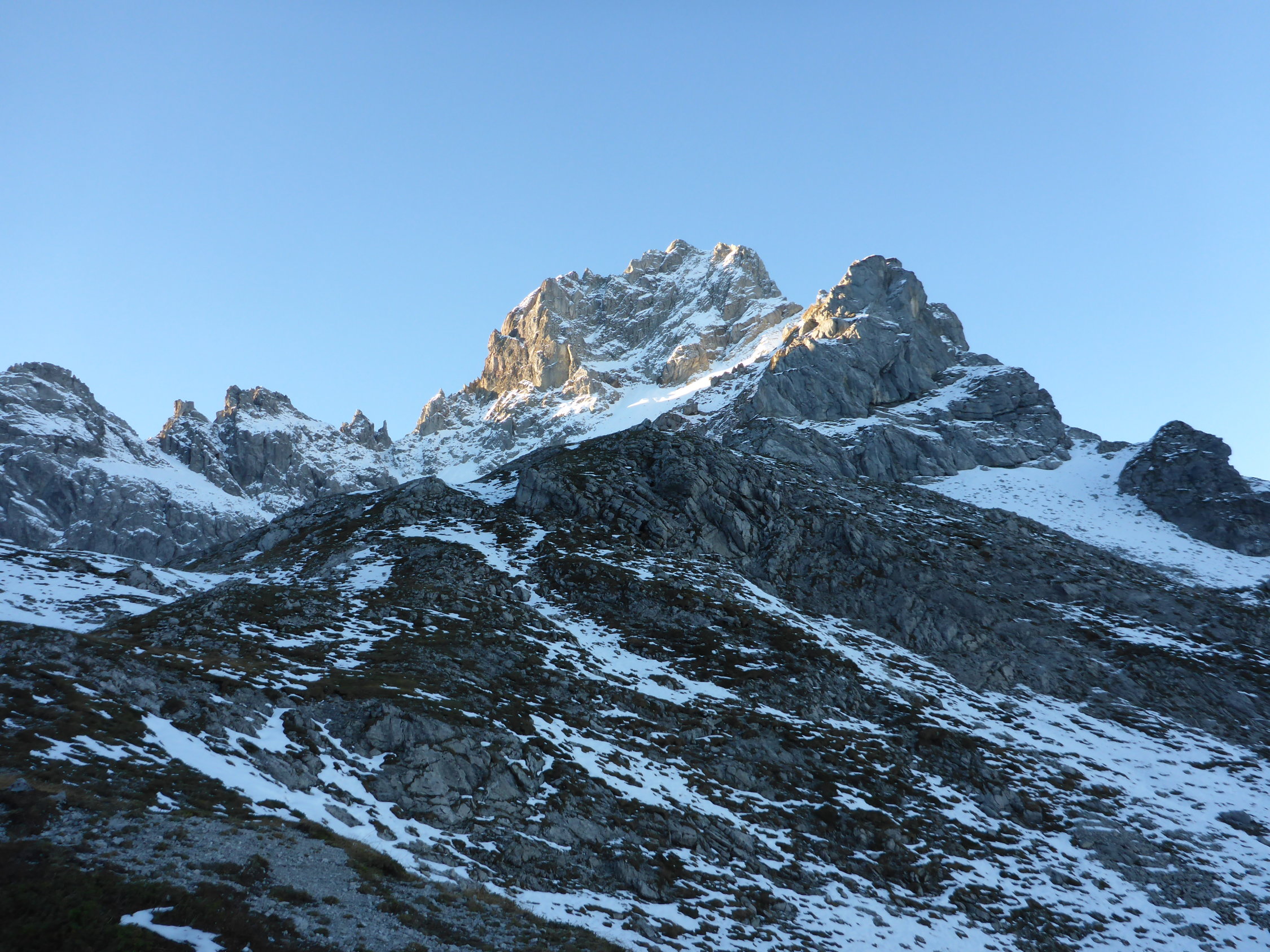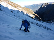Da es vom Tal aus doch eine fordernde Tour ist waren wir heute auf dieser Tour alleine unterwegs. Durch den Schnee benötigten wir 13 h (1.600Hm)