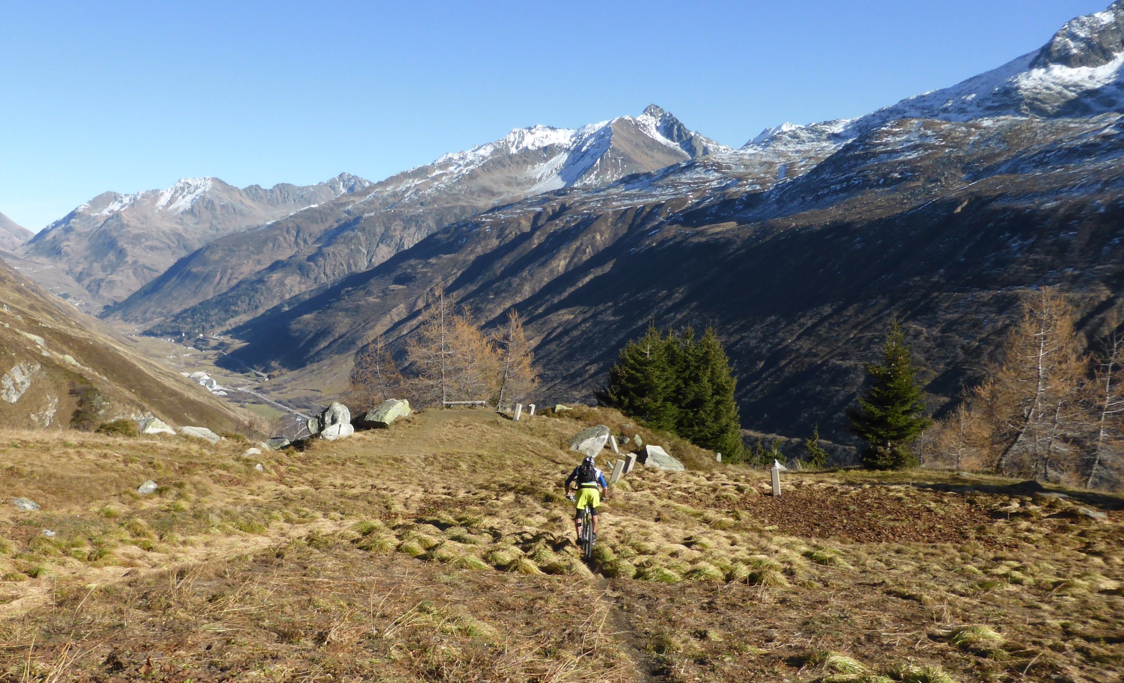 Bikeweg zur Hütte bis auf wenige Meter schneefrei.