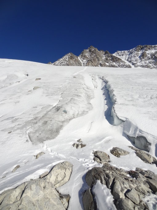 Sehr gute Verhältnisse - wie im Sommer. Bis zum Gletscheranfang kein/kaum Schnee. Felsplatten unterhalb des Gletschers komplett trocken. Am Gletscher zuerst ca. 50 m blank (jedoch gut strukturiertes Eis, kann problemlos am kurzen Seil gegangen werden). Danach überall Trittschnee. Spur liegt jetzt seit heute. Aufstieg über den Südgrat zum Gipfel. Grat trocken und schneefrei. In diesem Grat Schwierigkeit höchstens 1-2 Stellen im 2. Grad. Danach weiter über den Nordwestgrat zum Vorgipfel (hier im Abstieg vom Gipfel 2 kurze Stellen im 3. Grad) und wieder auf den Gletscher. Über diesen problemlos zurück.