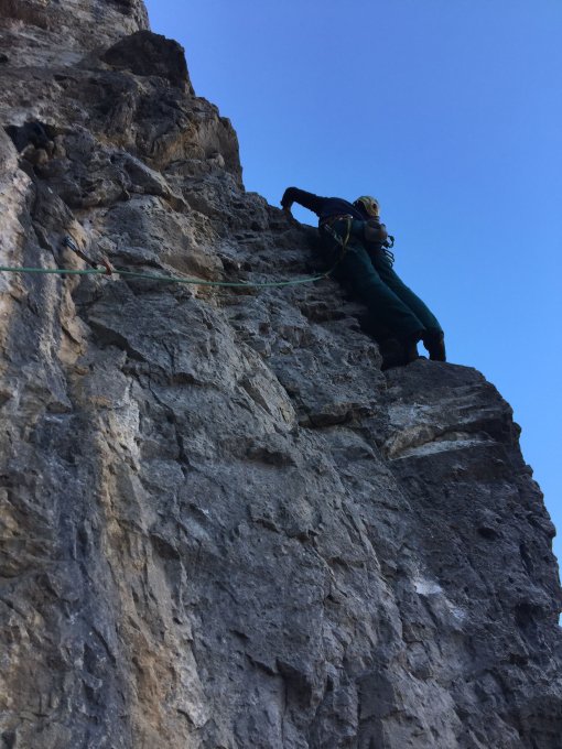 Heute haben wir die Kombination Direttissima - Quergang in umgekehrter Richtung - Gran Diedro geklettert.