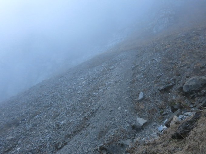 Früher Start um 7 Uhr bei frischen 4°C, bewölktem Himmel und zügigem Westwind. Wege durchwegs trocken, (von Wegen Schneefallgrenze 1500 Meter)… Oberhalb ca. 2250 Meter etwas eisig vom stürmischen Westwind und dem Nebel der an den Felsen und an den Stahlseilen für schöne Eisgebilde sorgte. Himmelsleiter im Abstieg heikel bei diesen Verhältnissen.