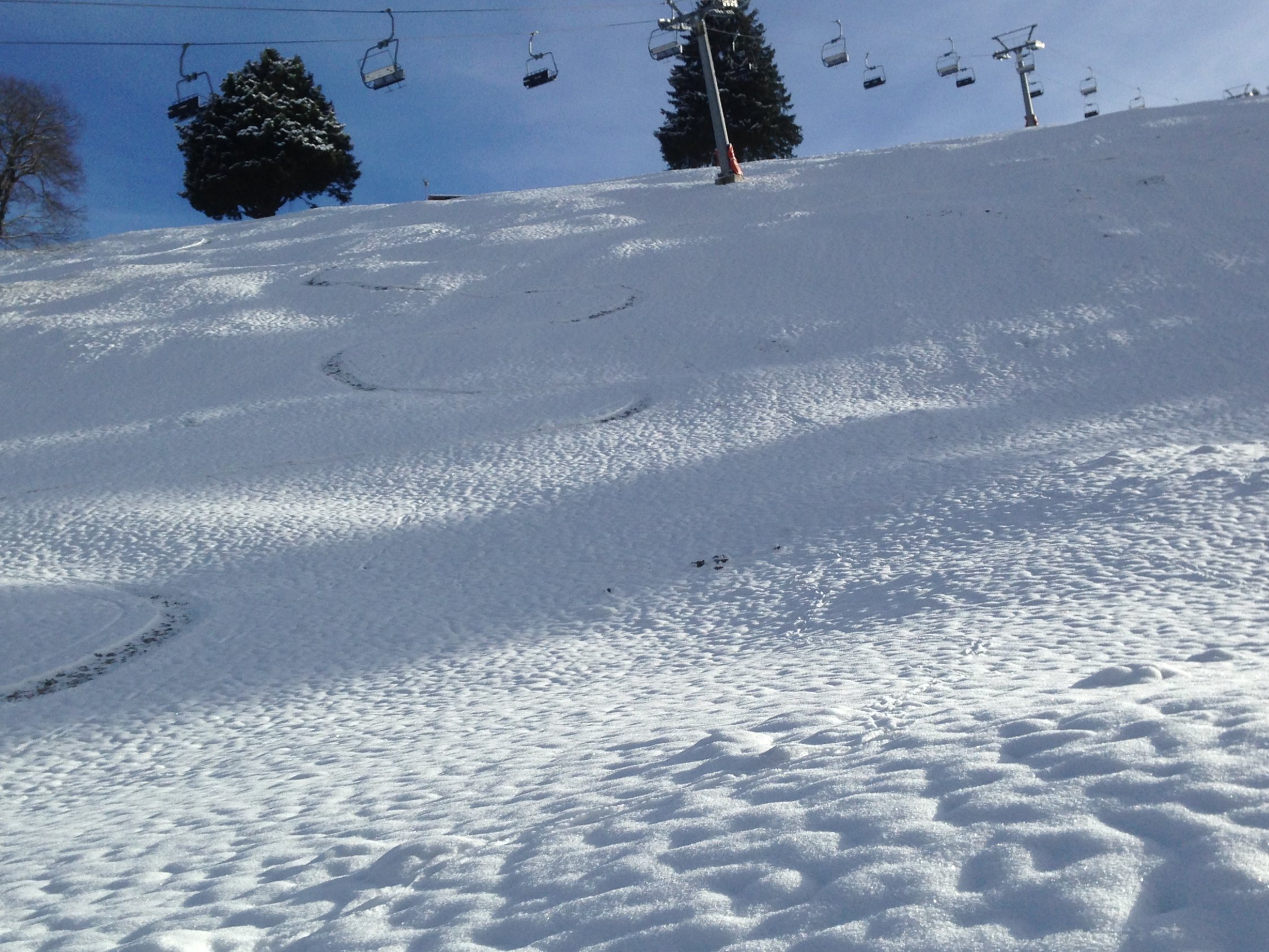 Der Alpweg ist allerdings wirklich unter den Bäumen noch sehr schlecht eingeschneit, wen wunderts.