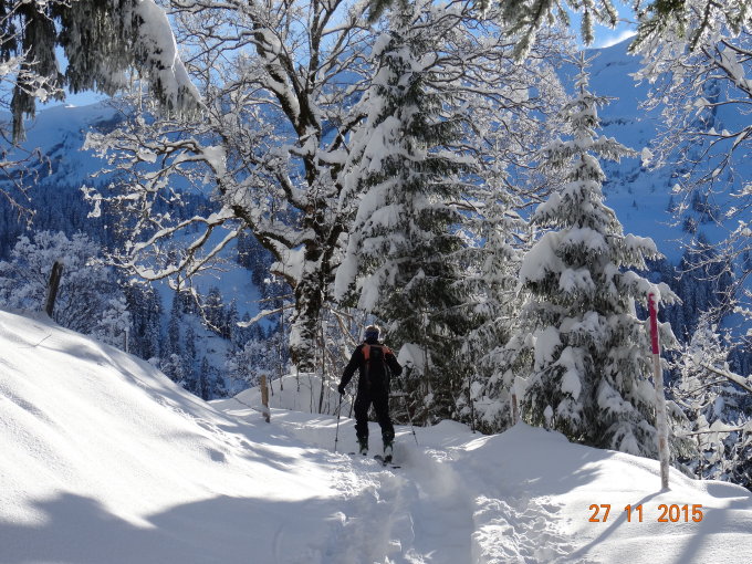 Super Bedingungen, beim Aufstieg noch unverspurtes Gelände.