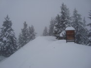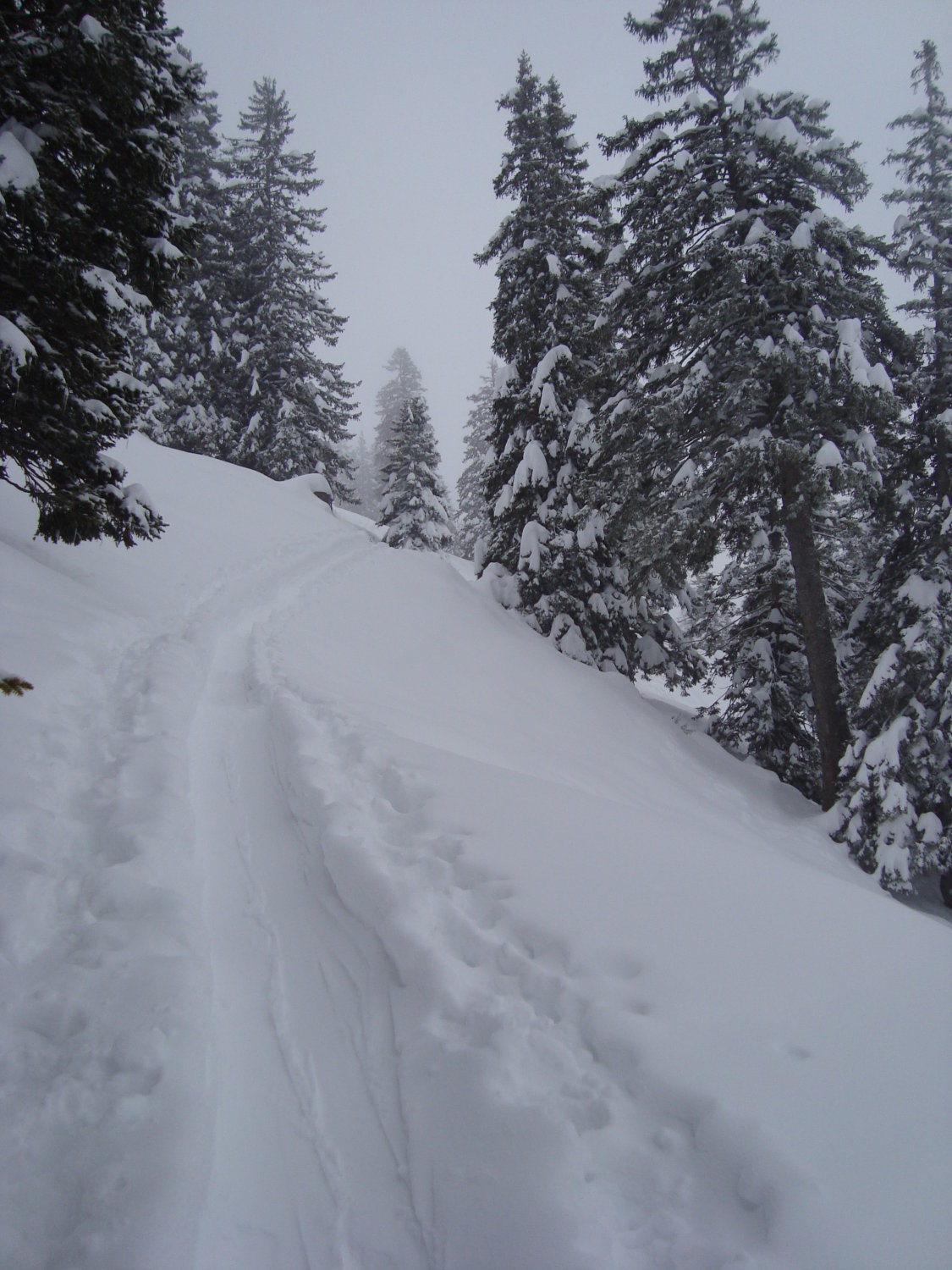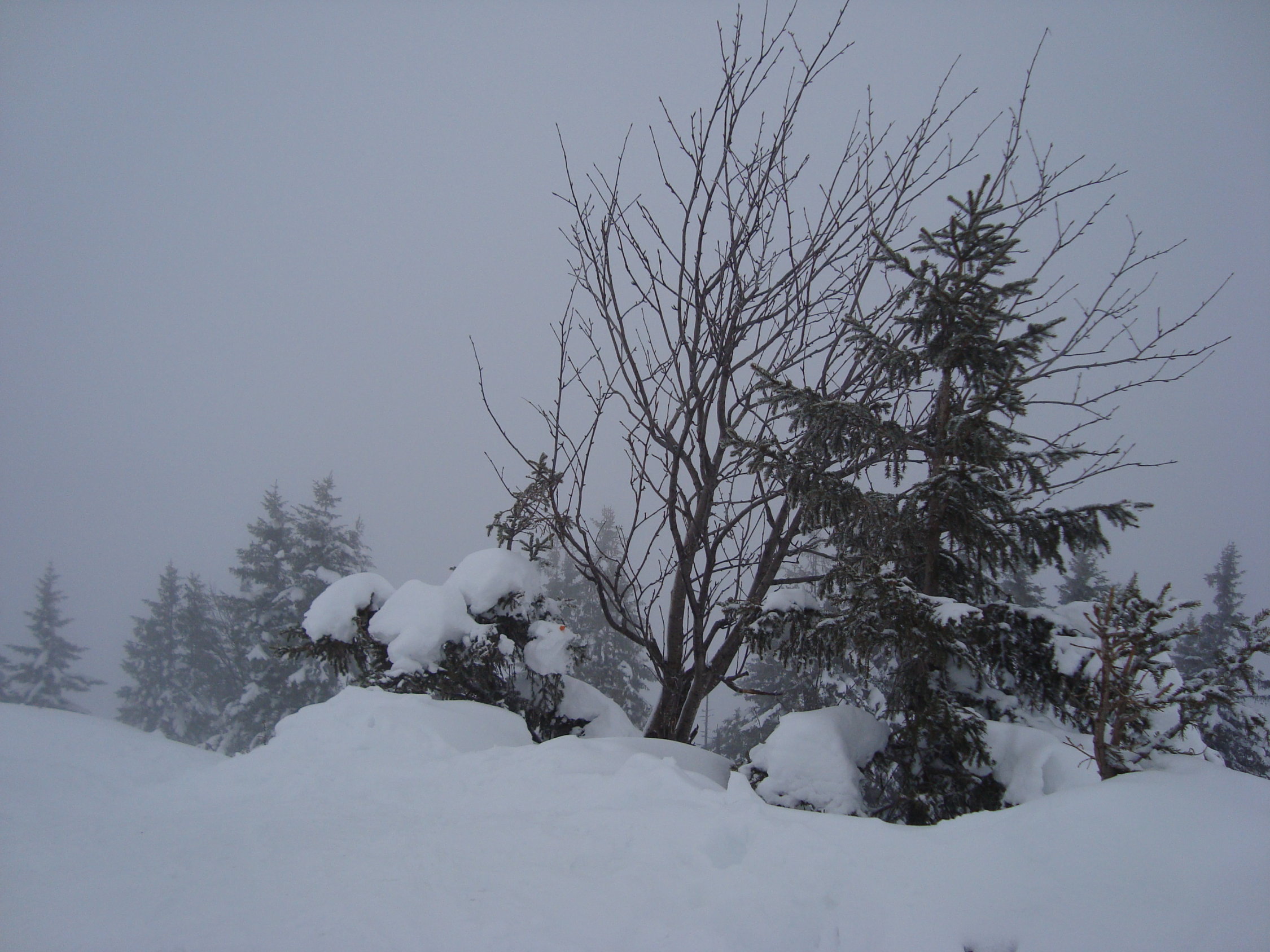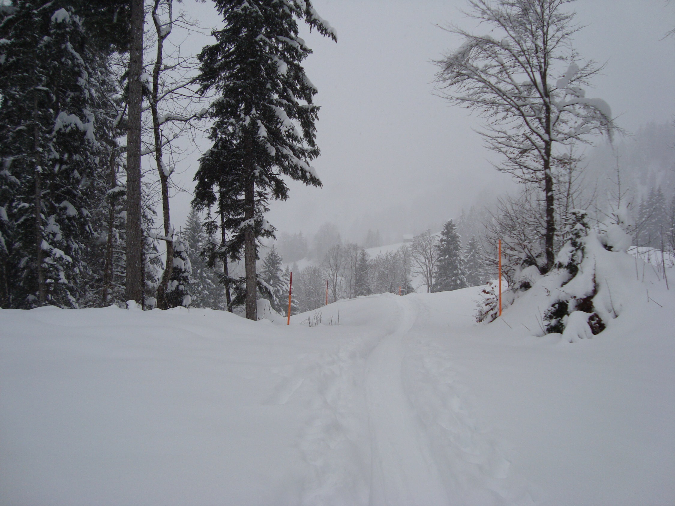 In der Abfahrt dann nebelig und eben diffuses Licht bei bedecktem Himmel, was die Konturen etwas verschwinden lies.