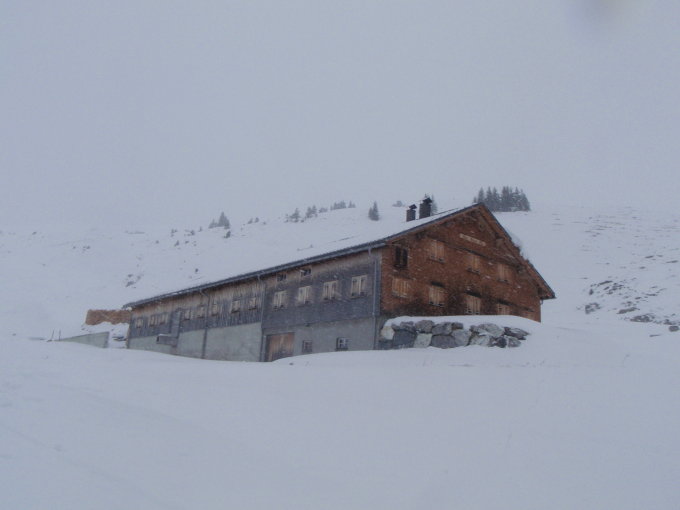 Beim ersten Aufstieg bis zur Bergstation "Ragazer Blanken". Einen Gipfel hab ich nicht gefunden. War aber auch nicht schlimm, weil die Bergstation guten Windschutz zum Abfellen geboten hat.